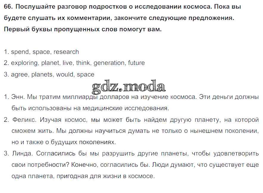ОТВЕТ на задание № 66 Учебник по Английскому языку 8 класс Биболетова Enjoy English