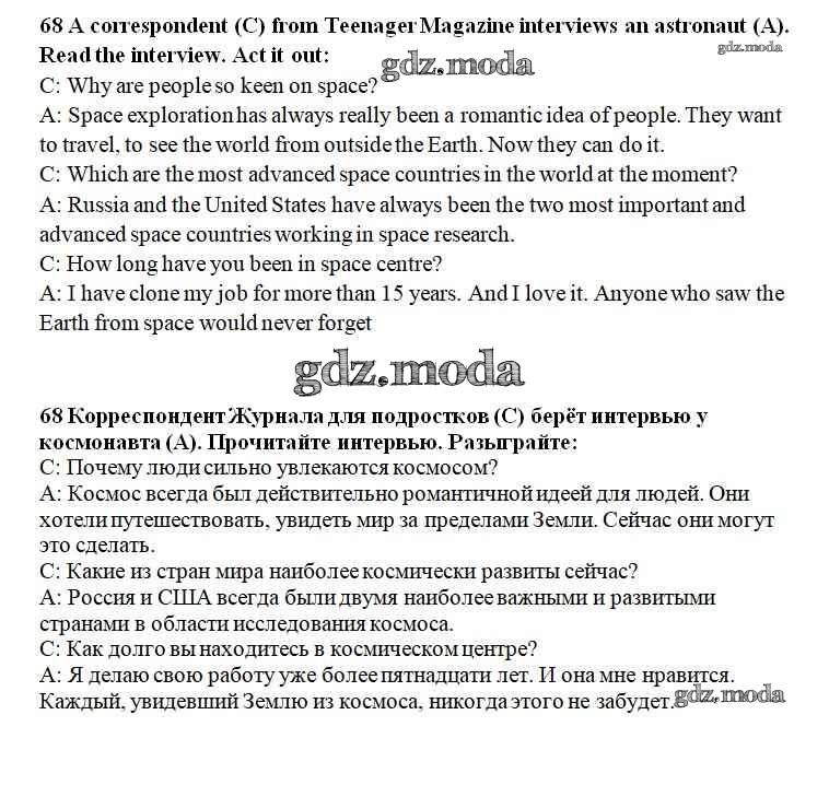 ОТВЕТ на задание № 68 Учебник по Английскому языку 8 класс Биболетова Enjoy English