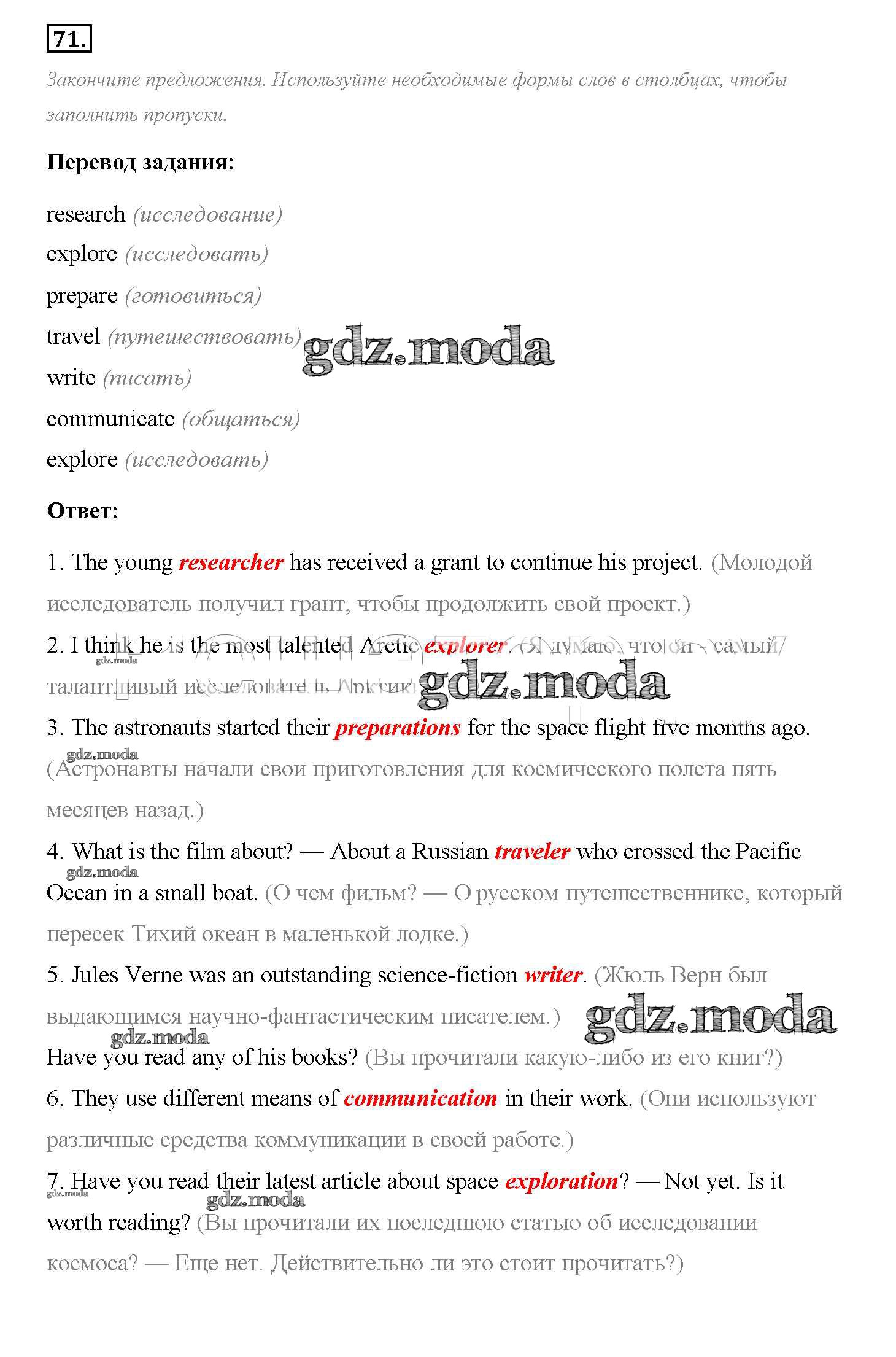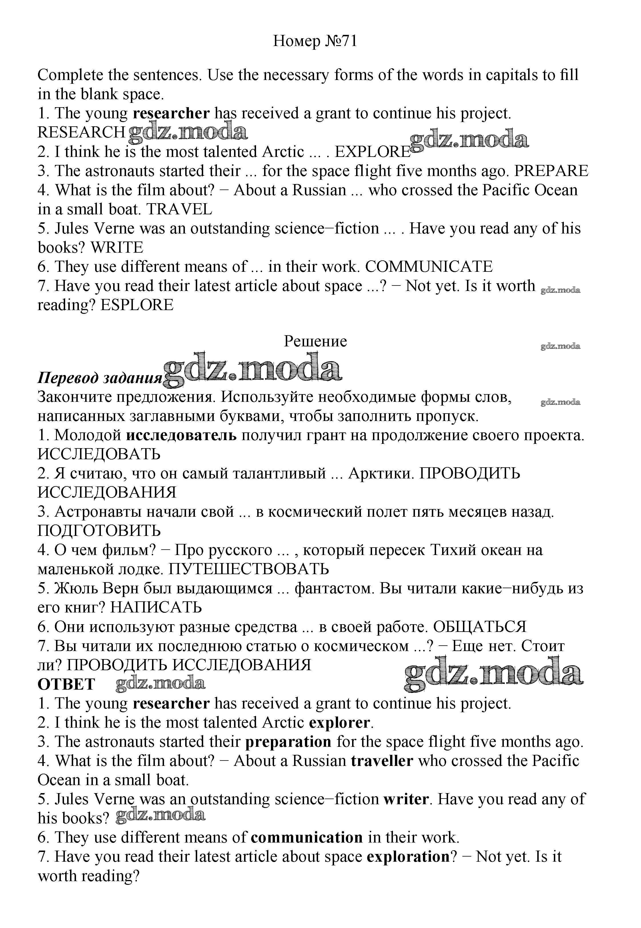 ОТВЕТ на задание № 71 Учебник по Английскому языку 8 класс Биболетова Enjoy English