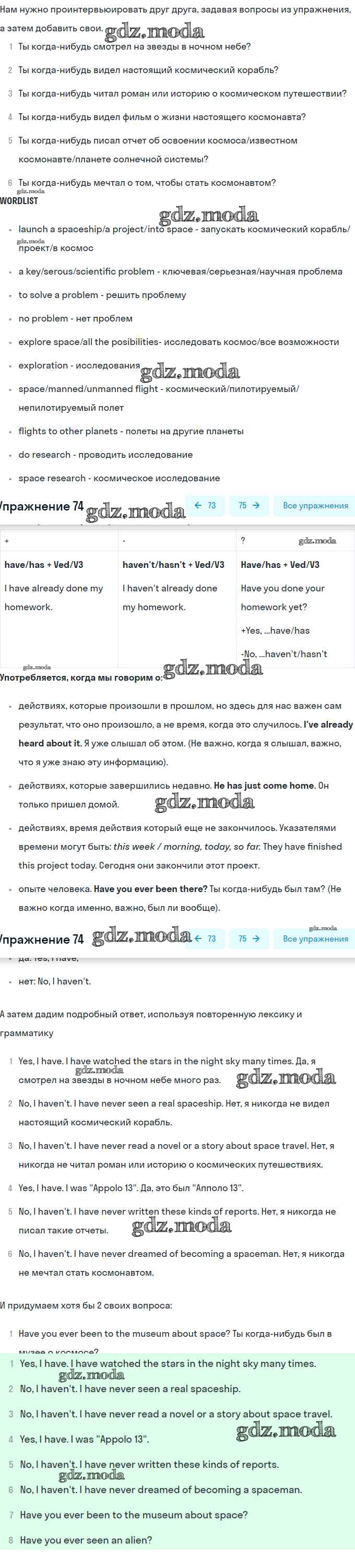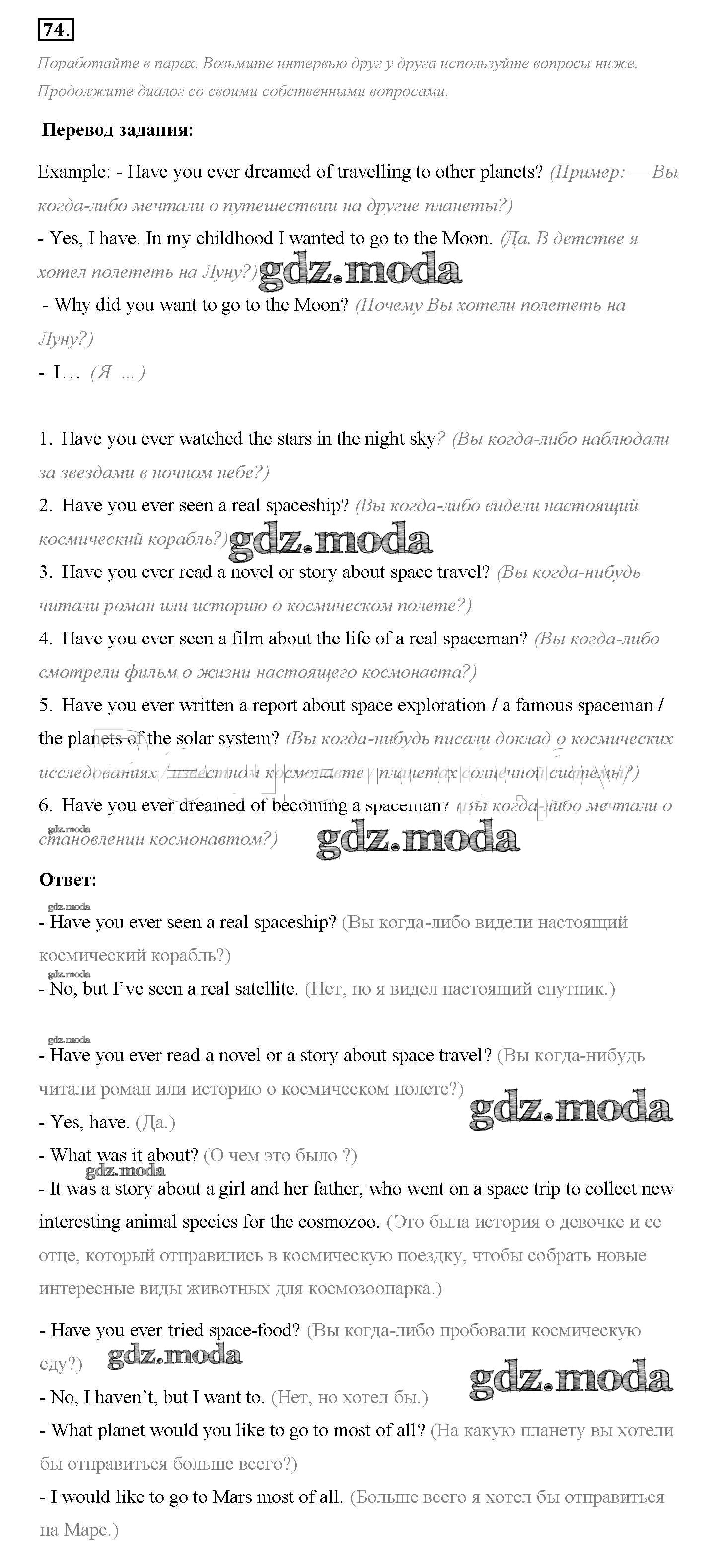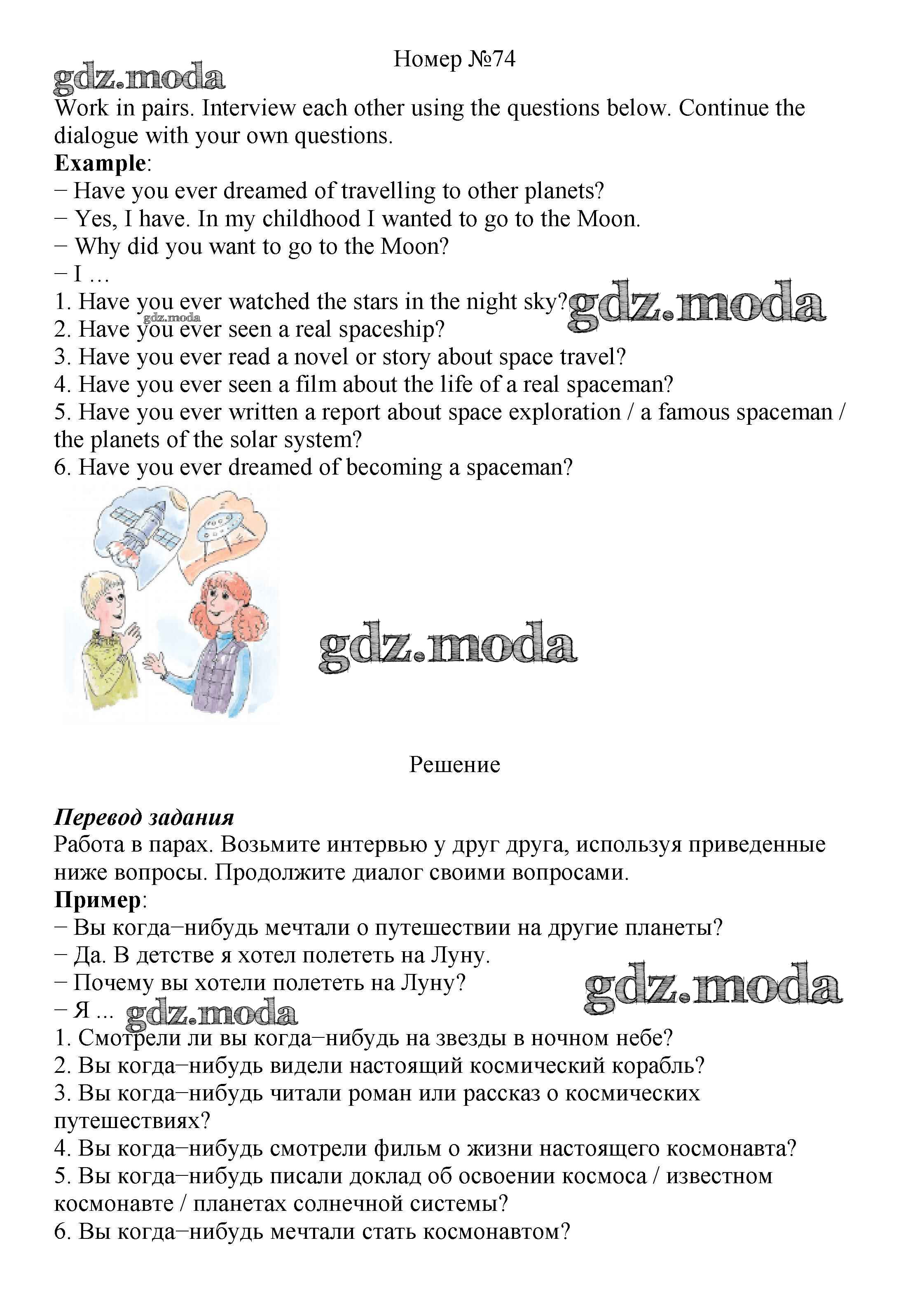 ОТВЕТ на задание № 74 Учебник по Английскому языку 8 класс Биболетова Enjoy English
