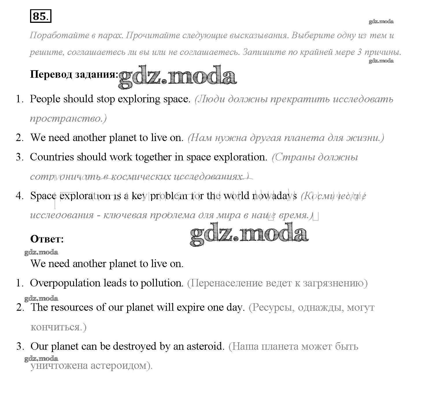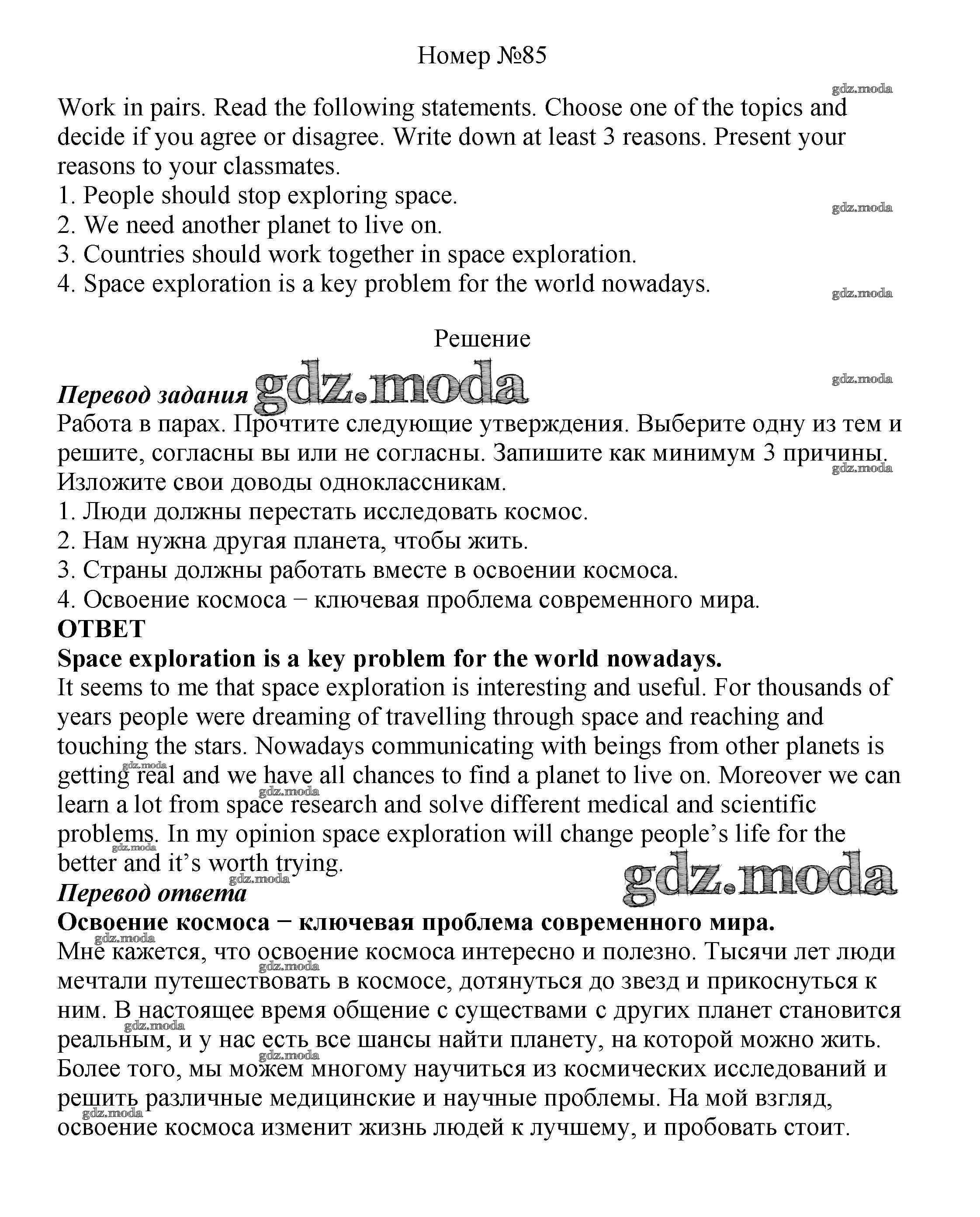 ОТВЕТ на задание № 85 Учебник по Английскому языку 8 класс Биболетова Enjoy English
