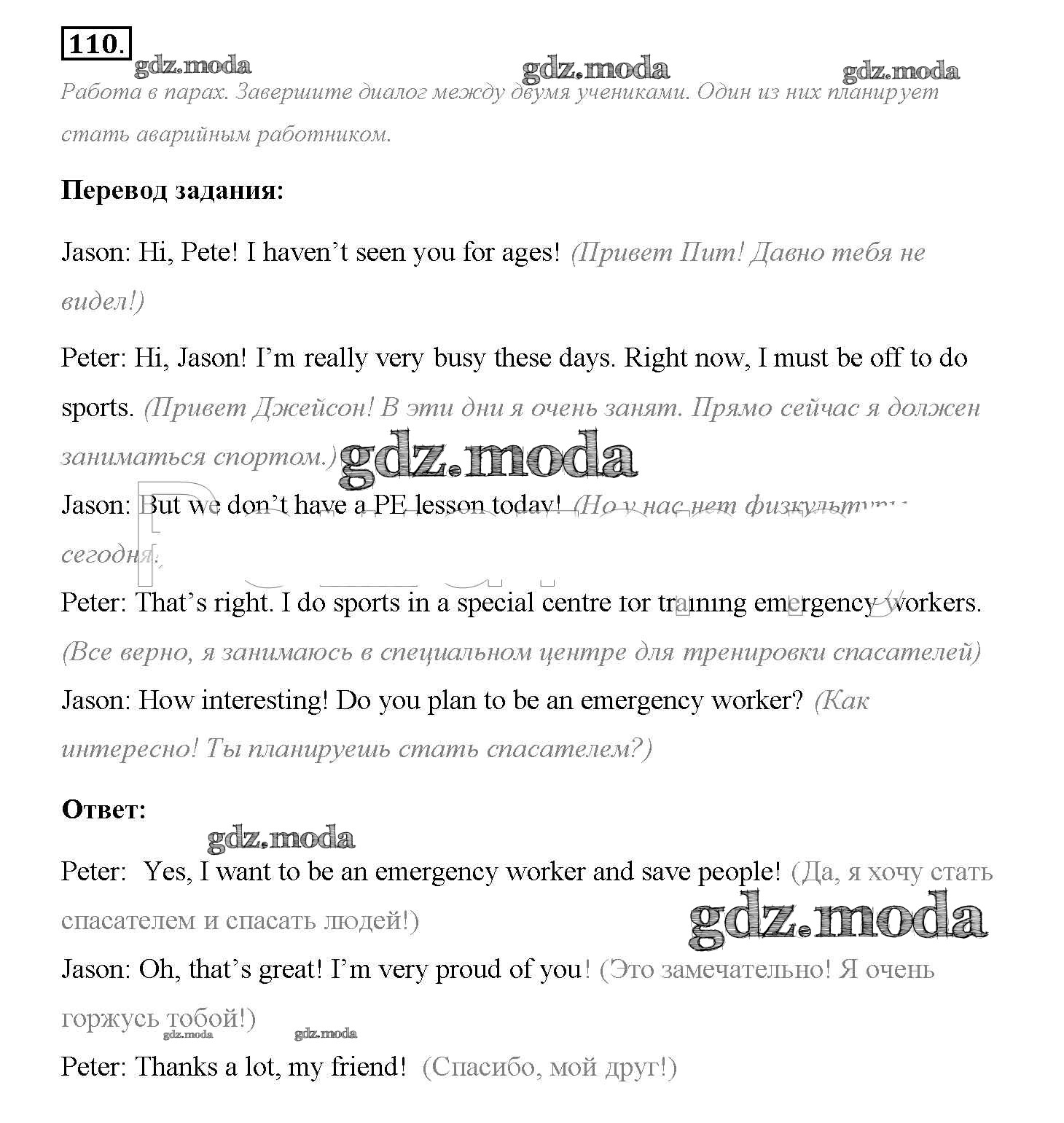 ОТВЕТ на задание № 110 Учебник по Английскому языку 8 класс Биболетова Enjoy English