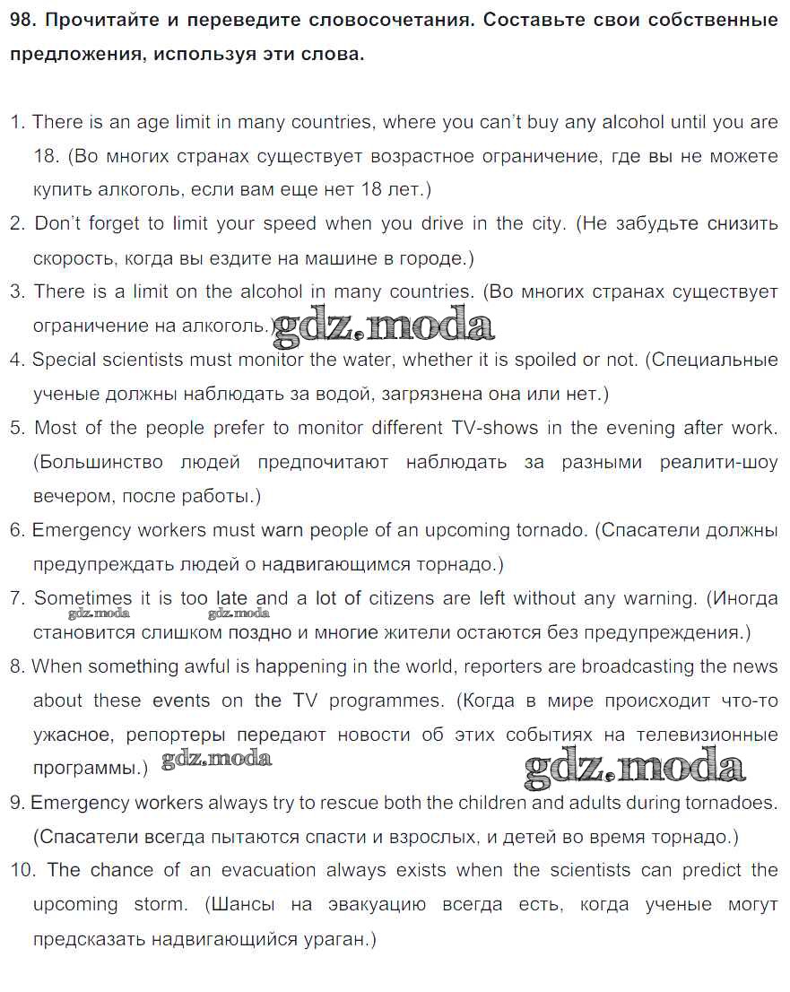 ОТВЕТ на задание № 98 Учебник по Английскому языку 8 класс Биболетова Enjoy English