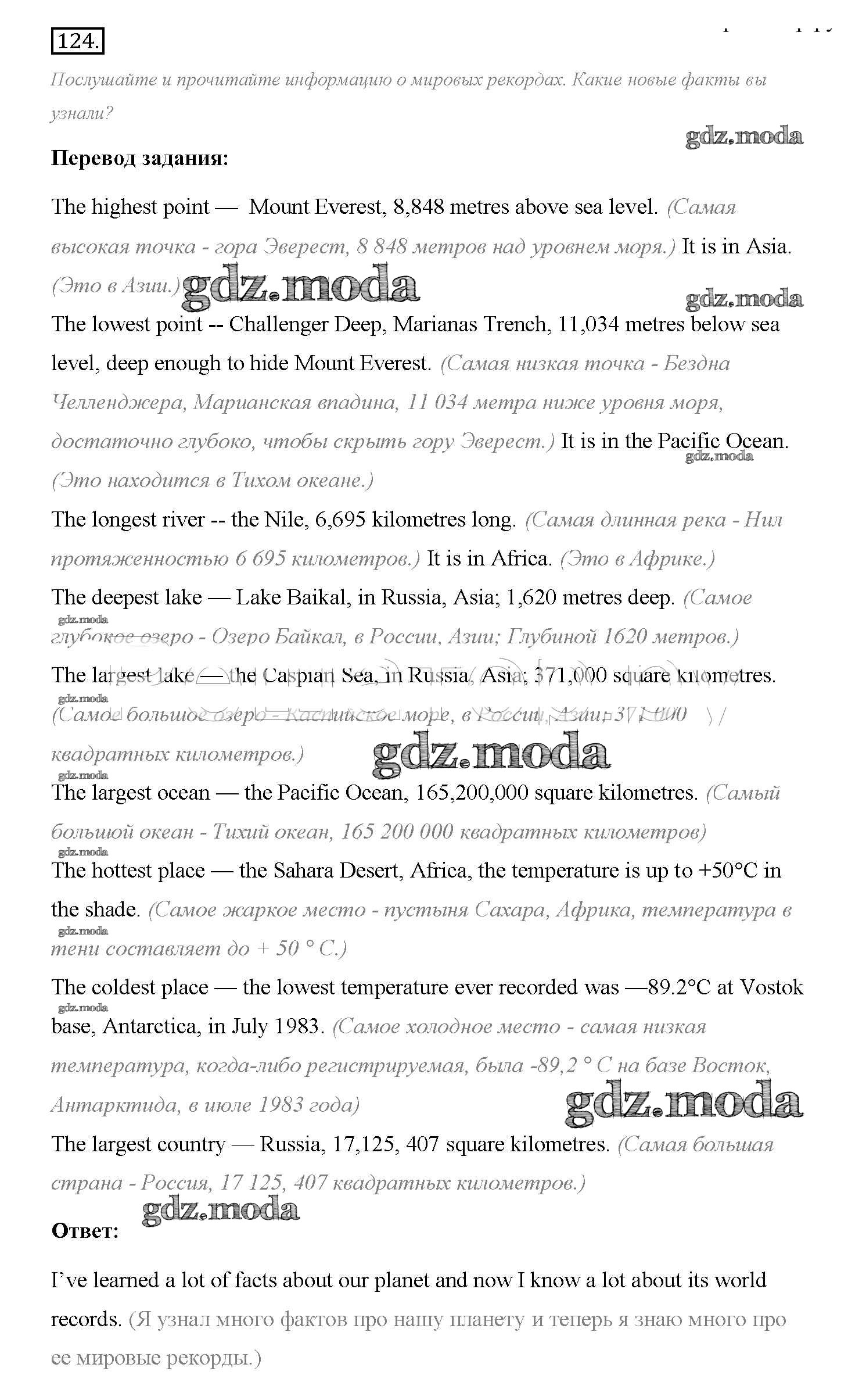 ОТВЕТ на задание № 124 Учебник по Английскому языку 8 класс Биболетова Enjoy English