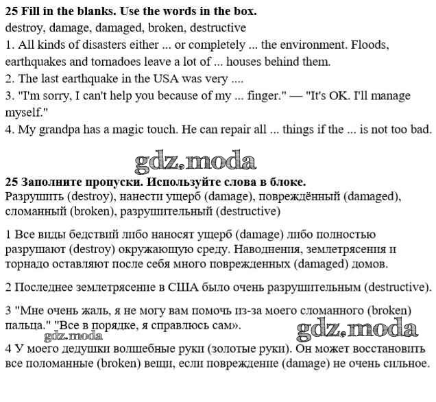 ОТВЕТ на задание № 25 Учебник по Английскому языку 8 класс Биболетова Enjoy English