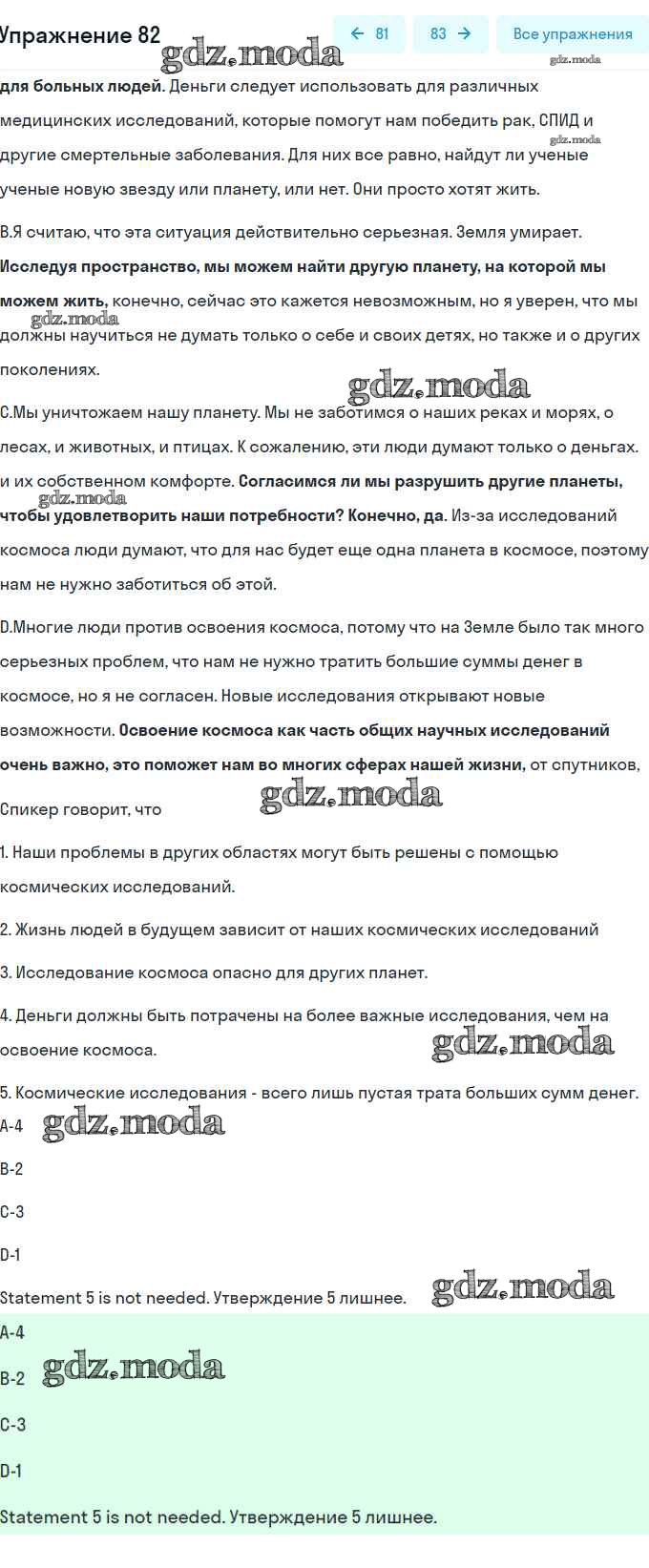 ОТВЕТ на задание № 82 Учебник по Английскому языку 8 класс Биболетова Enjoy English