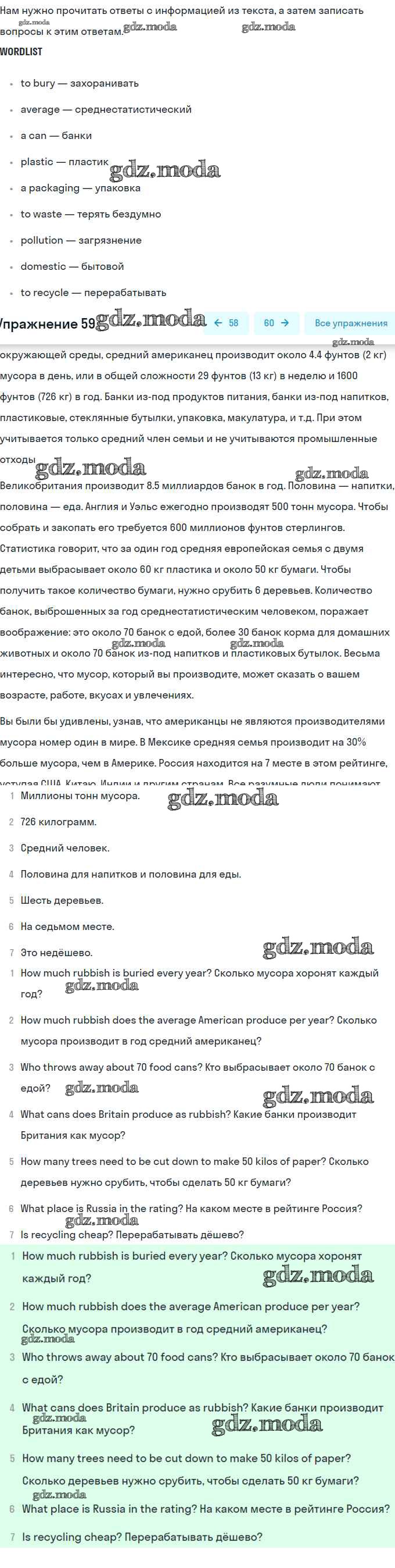 ОТВЕТ на задание № 59 Учебник по Английскому языку 8 класс Биболетова Enjoy English