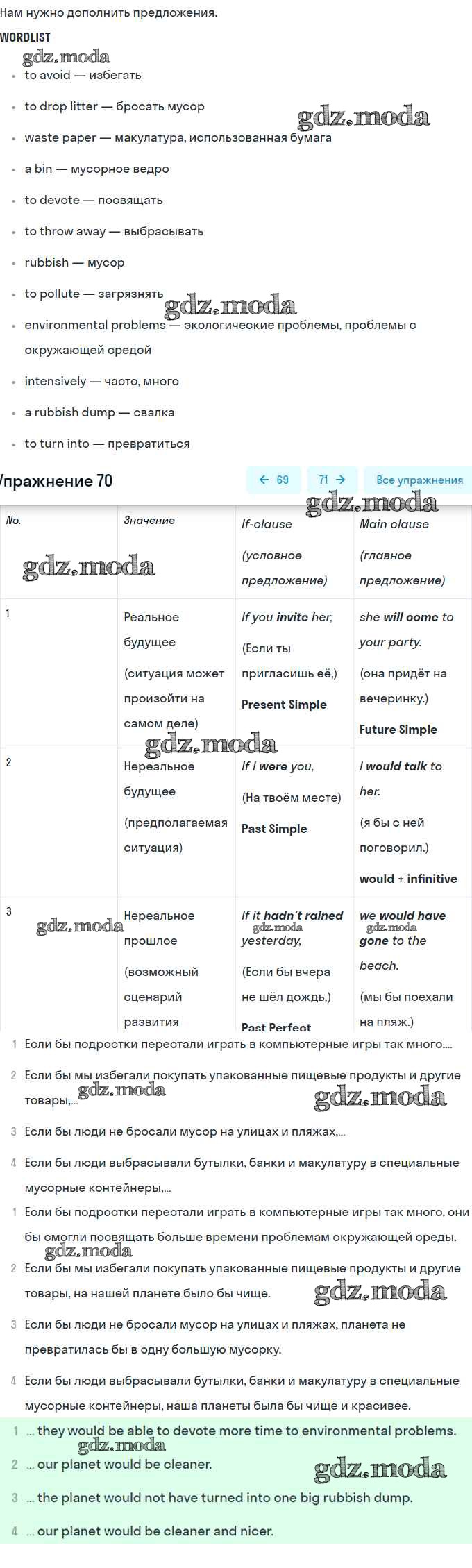 ОТВЕТ на задание № 70 Учебник по Английскому языку 8 класс Биболетова Enjoy English
