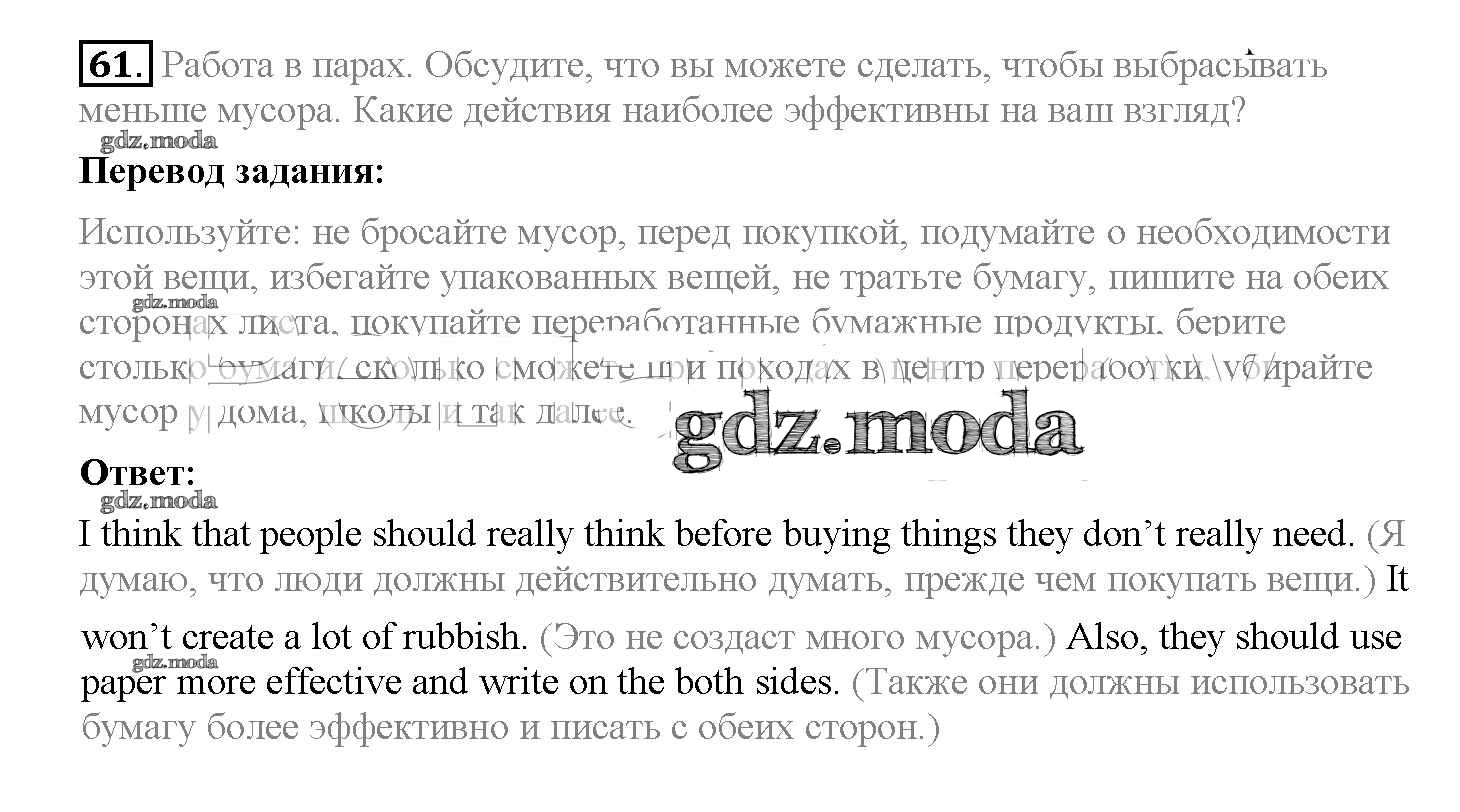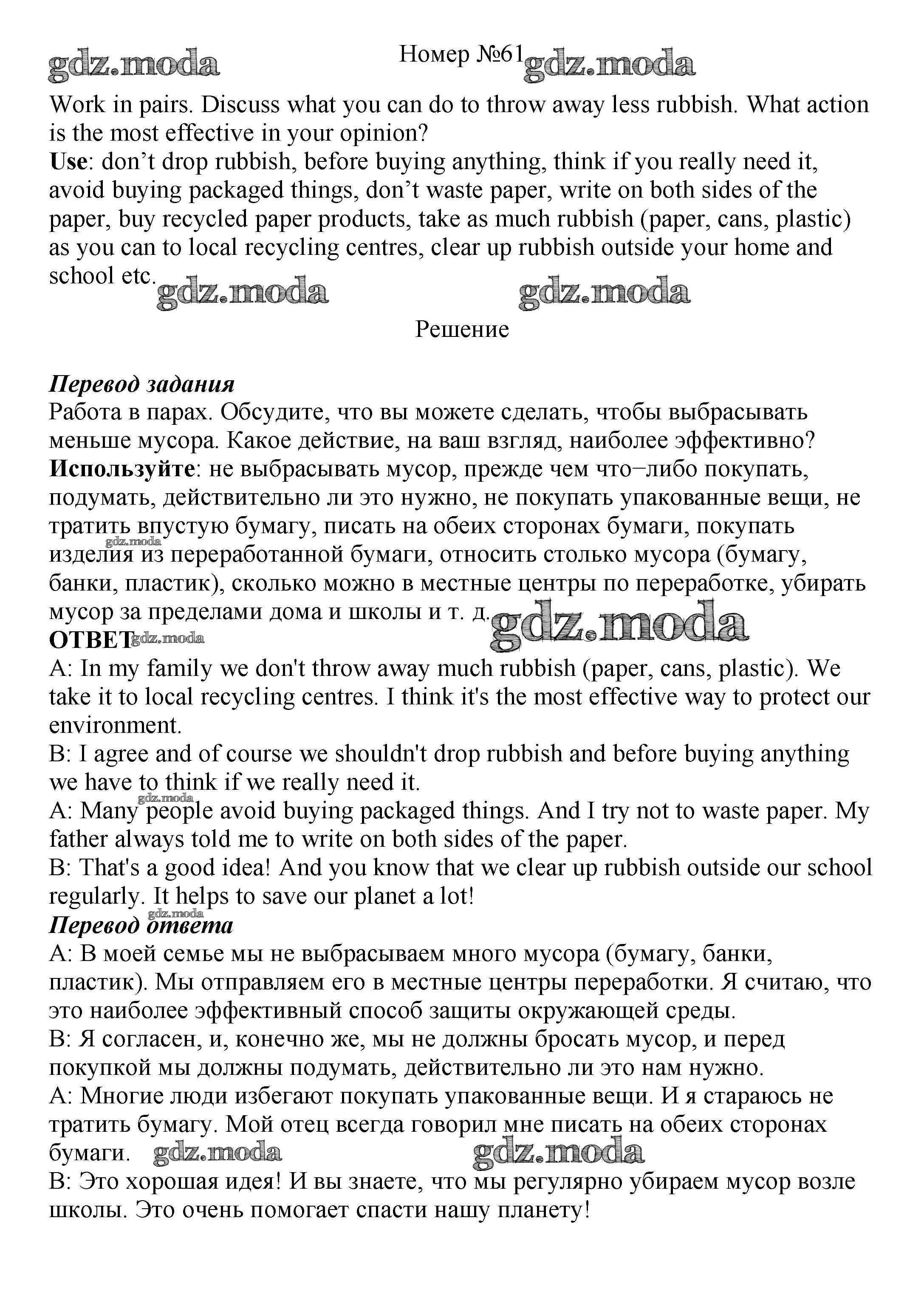 ОТВЕТ на задание № 61 Учебник по Английскому языку 8 класс Биболетова Enjoy English
