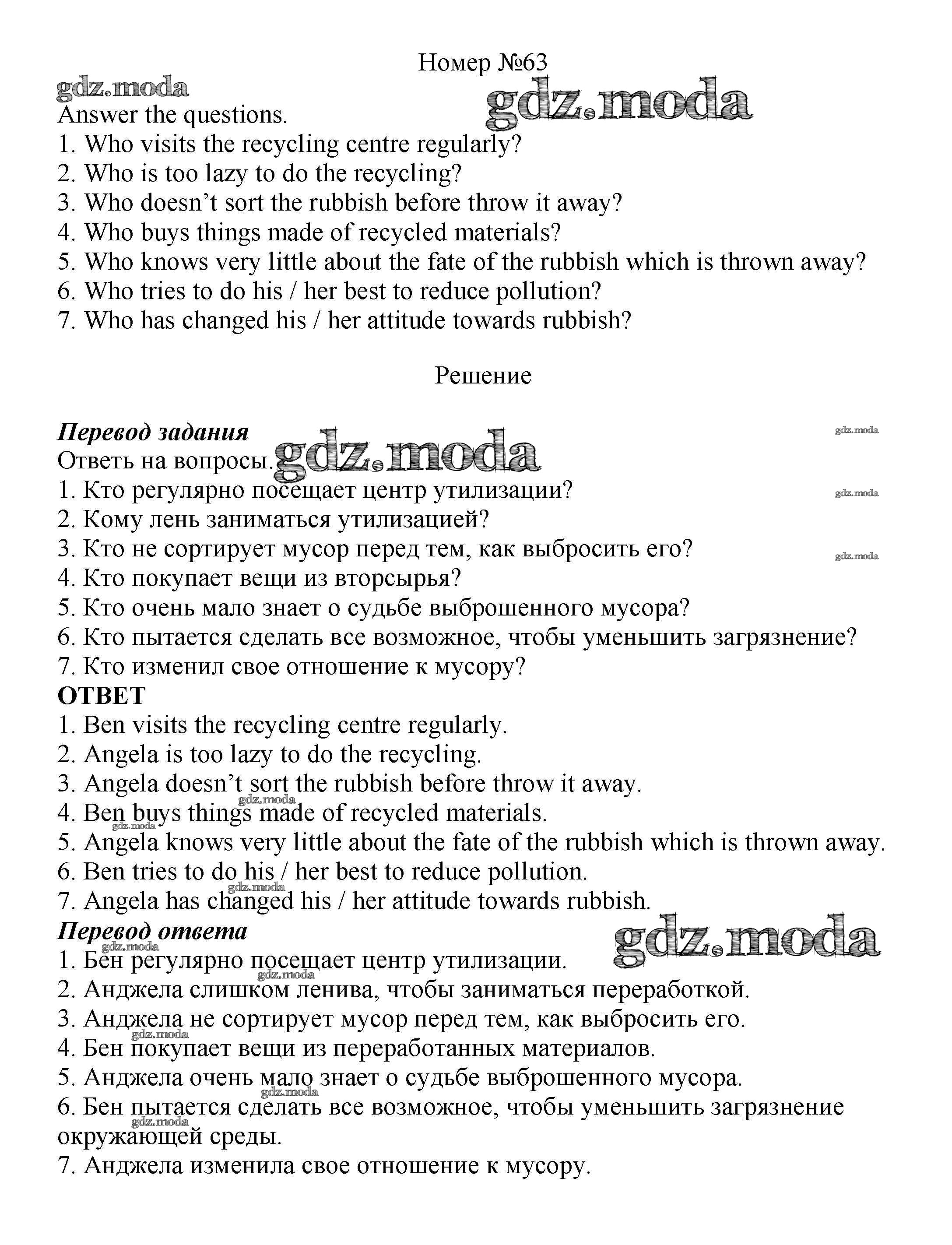 ОТВЕТ на задание № 63 Учебник по Английскому языку 8 класс Биболетова Enjoy English
