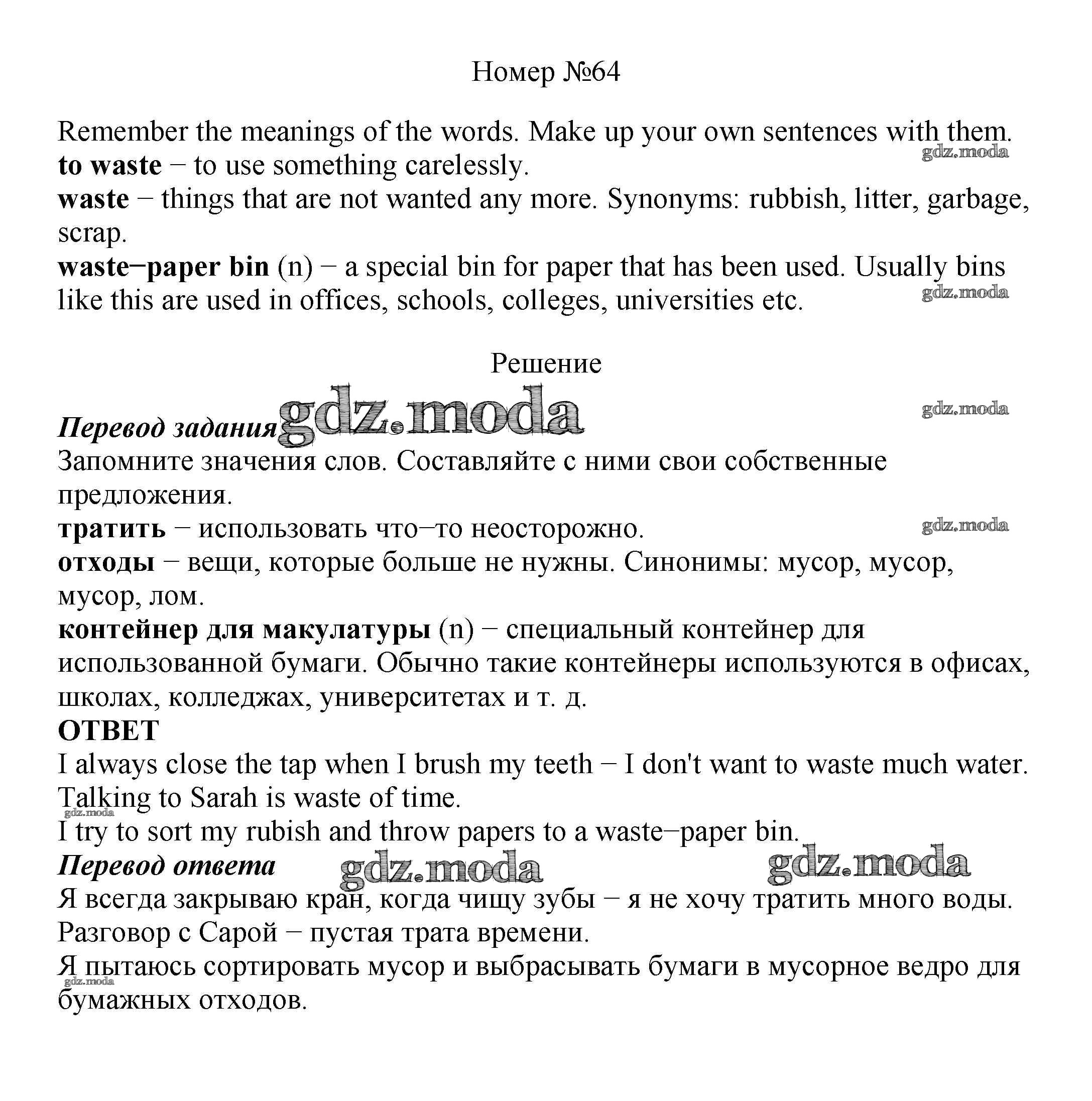 ОТВЕТ на задание № 64 Учебник по Английскому языку 8 класс Биболетова Enjoy English