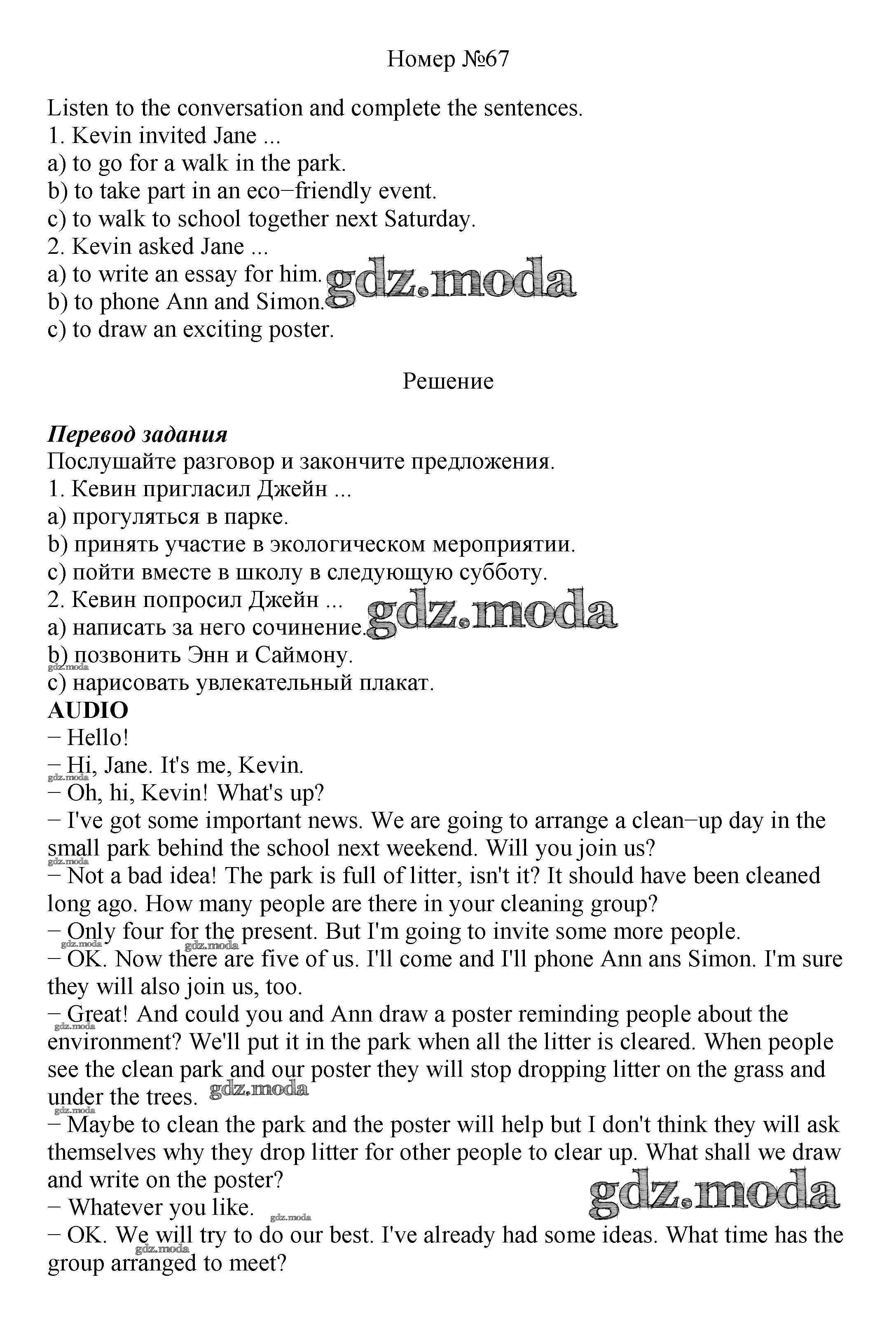 ОТВЕТ на задание № 67 Учебник по Английскому языку 8 класс Биболетова Enjoy English