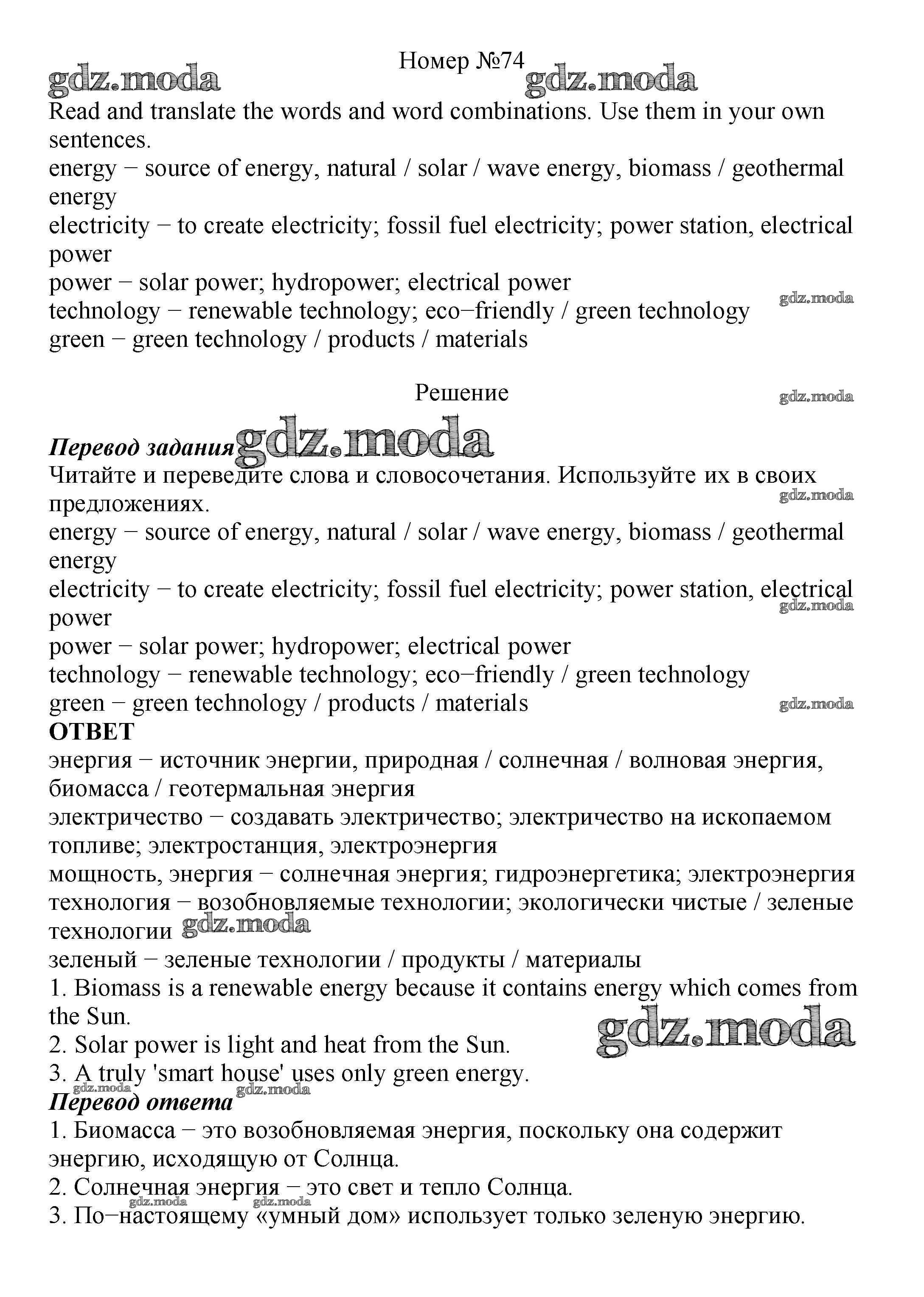 ОТВЕТ на задание № 74 Учебник по Английскому языку 8 класс Биболетова Enjoy English