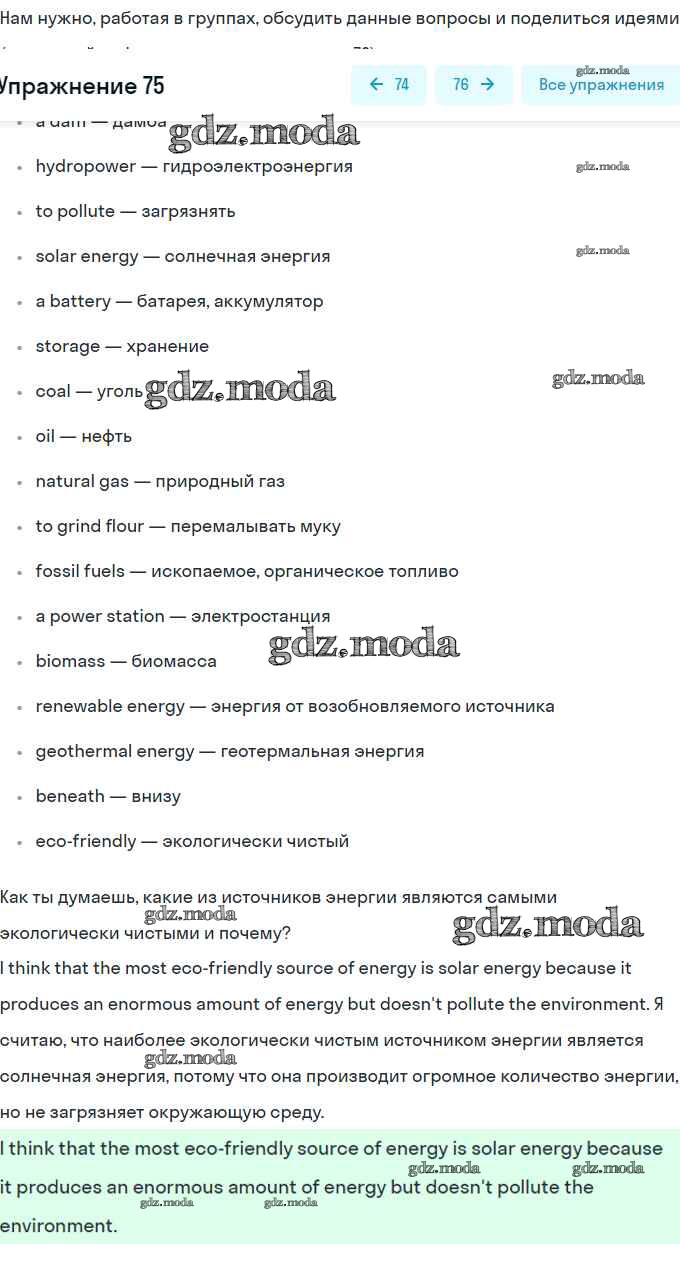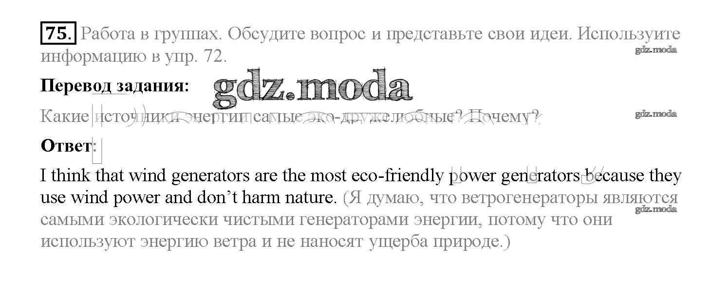 ОТВЕТ на задание № 75 Учебник по Английскому языку 8 класс Биболетова Enjoy English