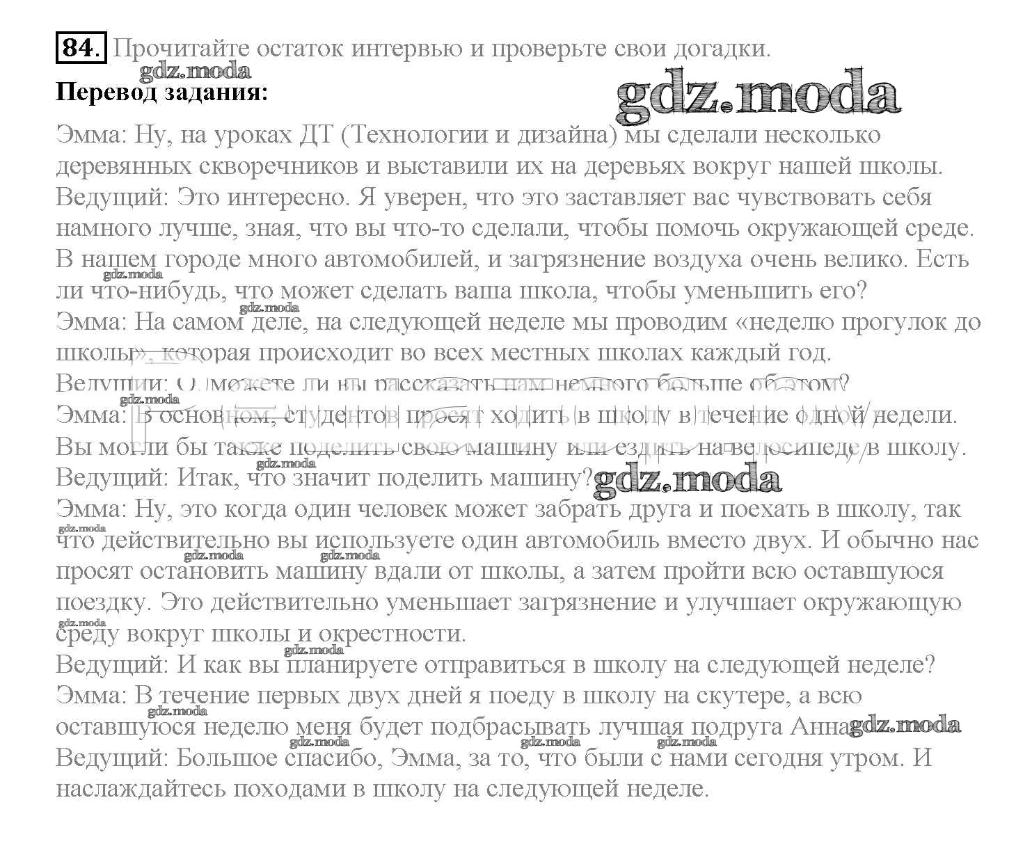 ОТВЕТ на задание № 84 Учебник по Английскому языку 8 класс Биболетова Enjoy English