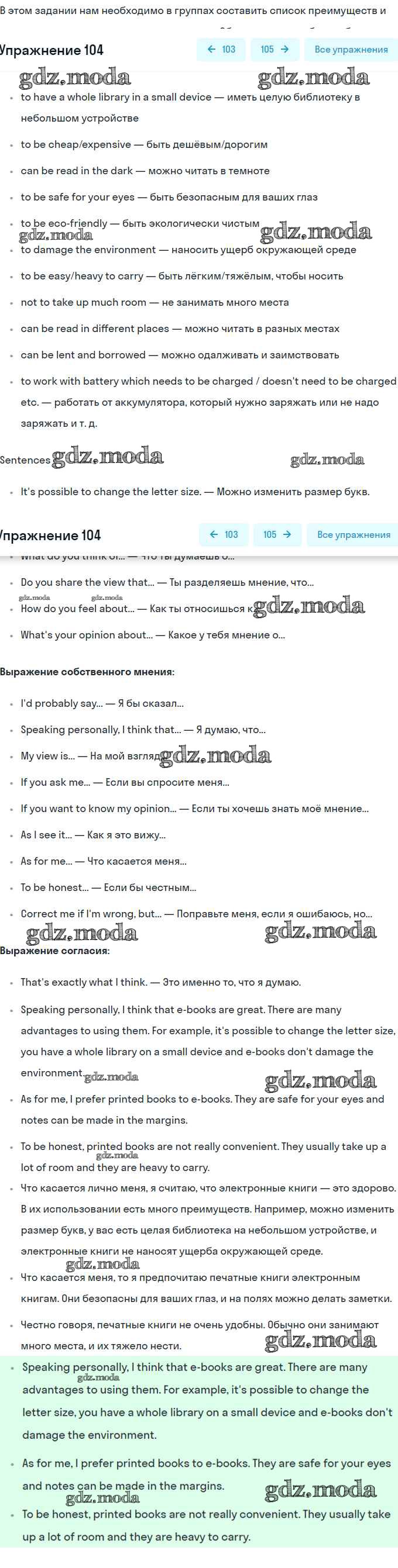 ОТВЕТ на задание № 104 Учебник по Английскому языку 8 класс Биболетова Enjoy English