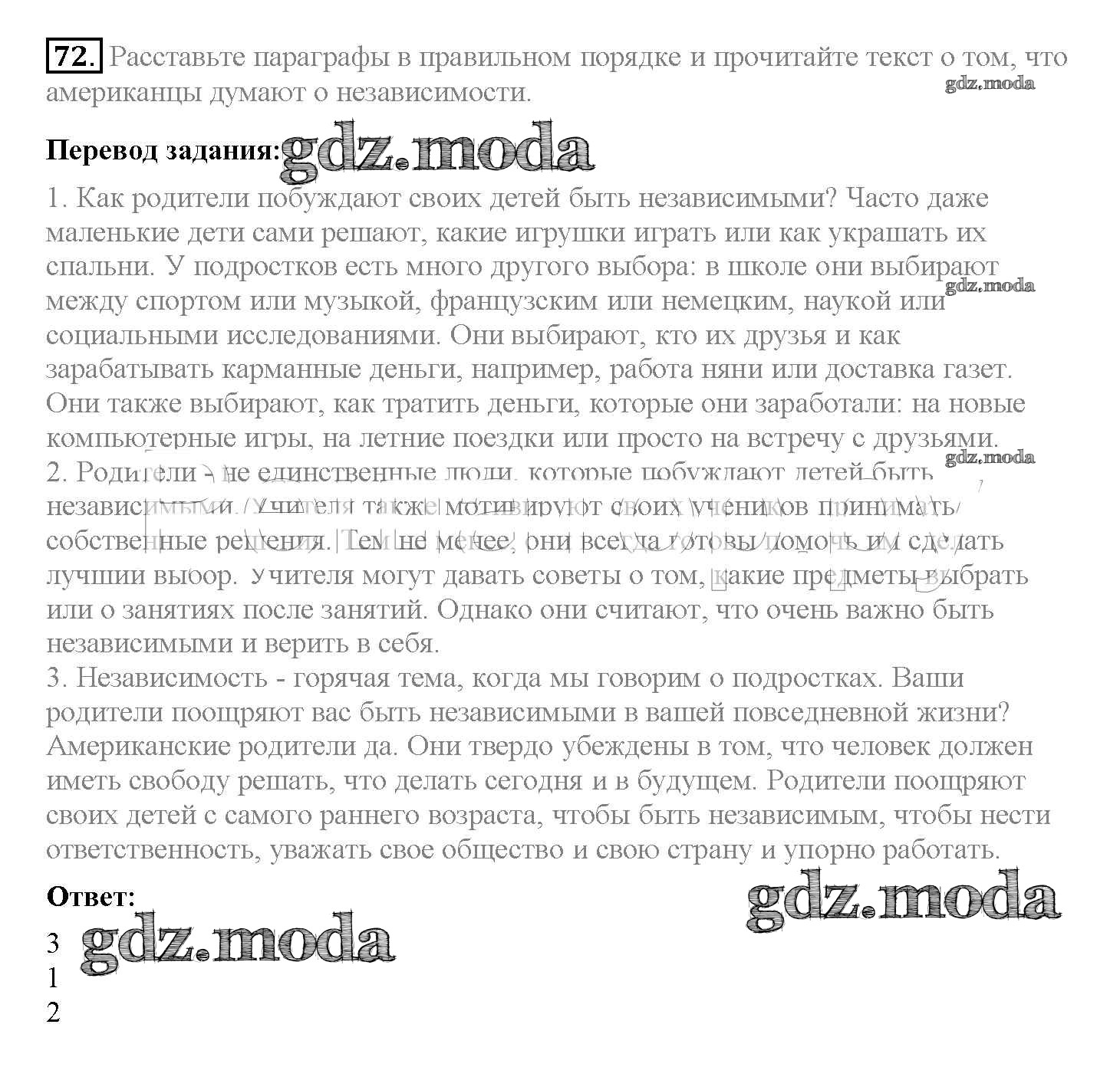 ОТВЕТ на задание № 72 Учебник по Английскому языку 8 класс Биболетова Enjoy English