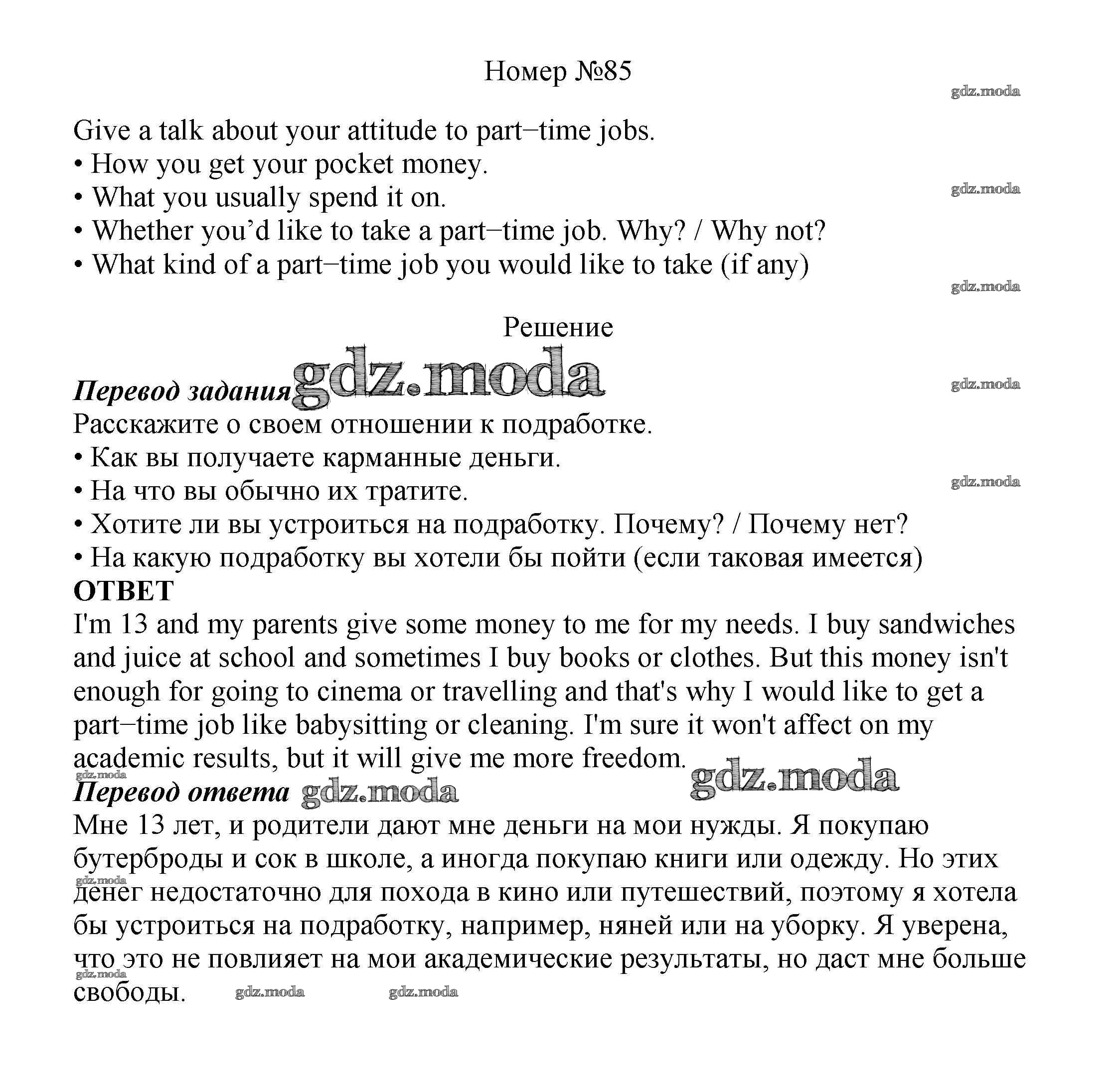 ОТВЕТ на задание № 85 Учебник по Английскому языку 8 класс Биболетова Enjoy English