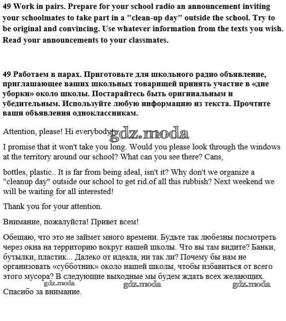 ОТВЕТ на задание № 49 Учебник по Английскому языку 8 класс Биболетова Enjoy English