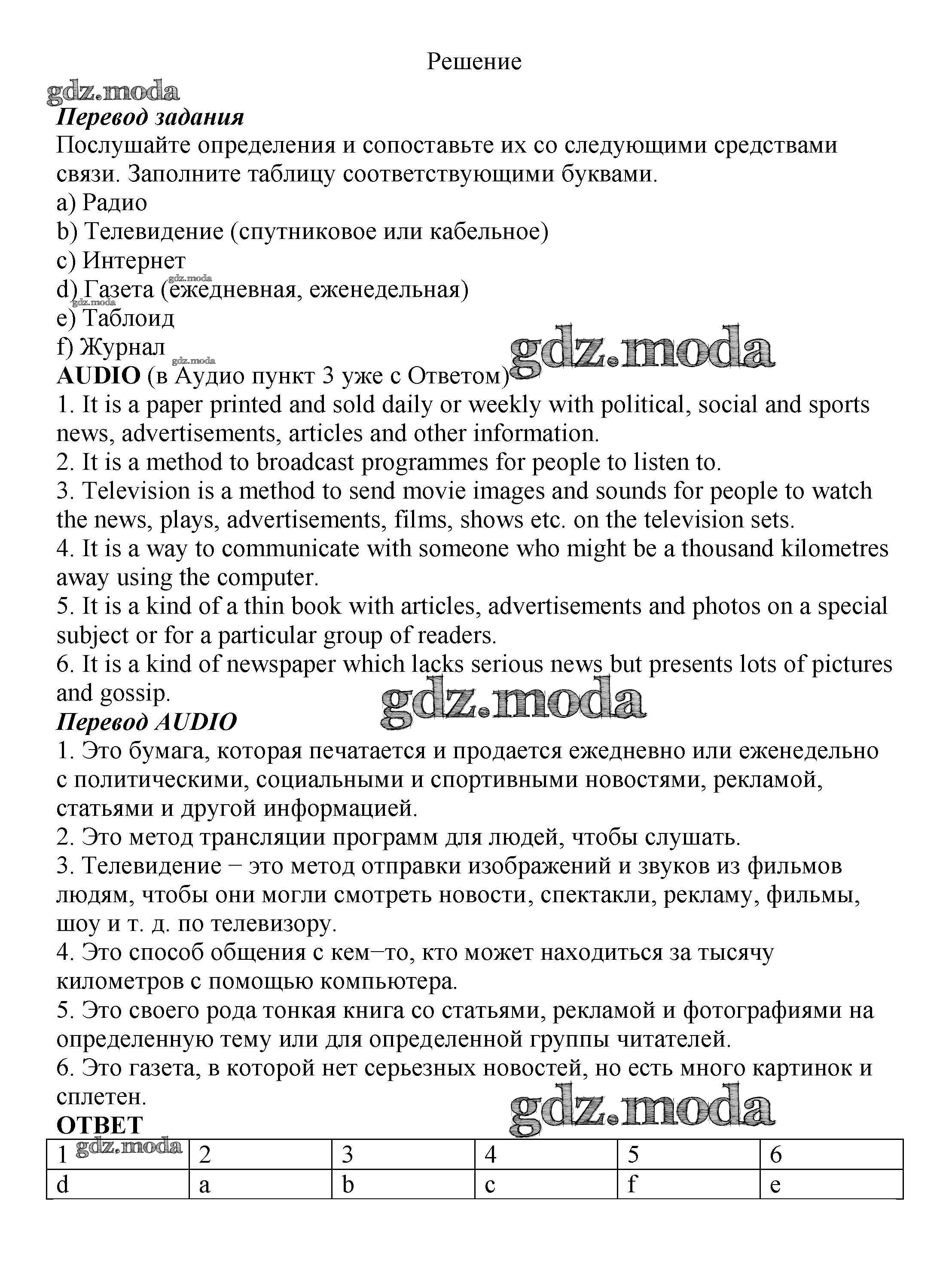 ОТВЕТ на задание № 1 Учебник по Английскому языку 8 класс Биболетова Enjoy English