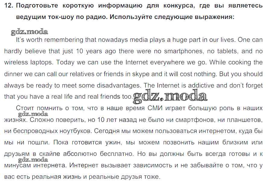 ОТВЕТ на задание № 12 Учебник по Английскому языку 8 класс Биболетова Enjoy English