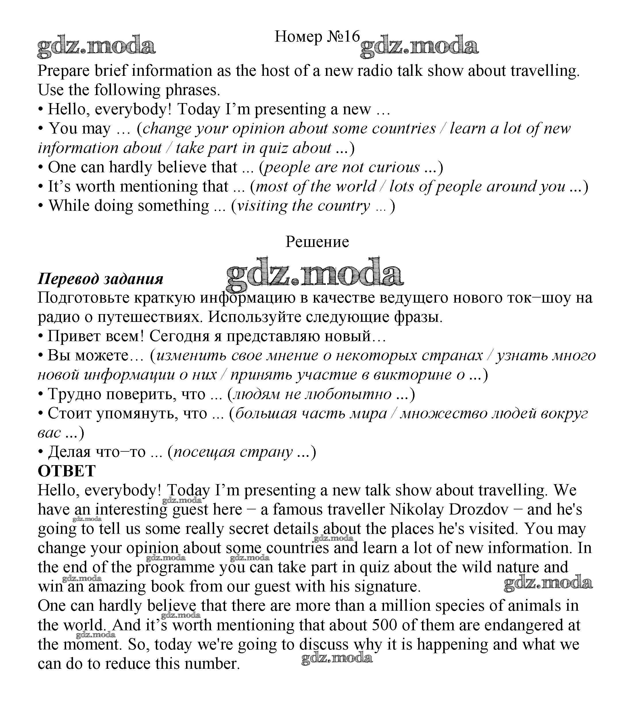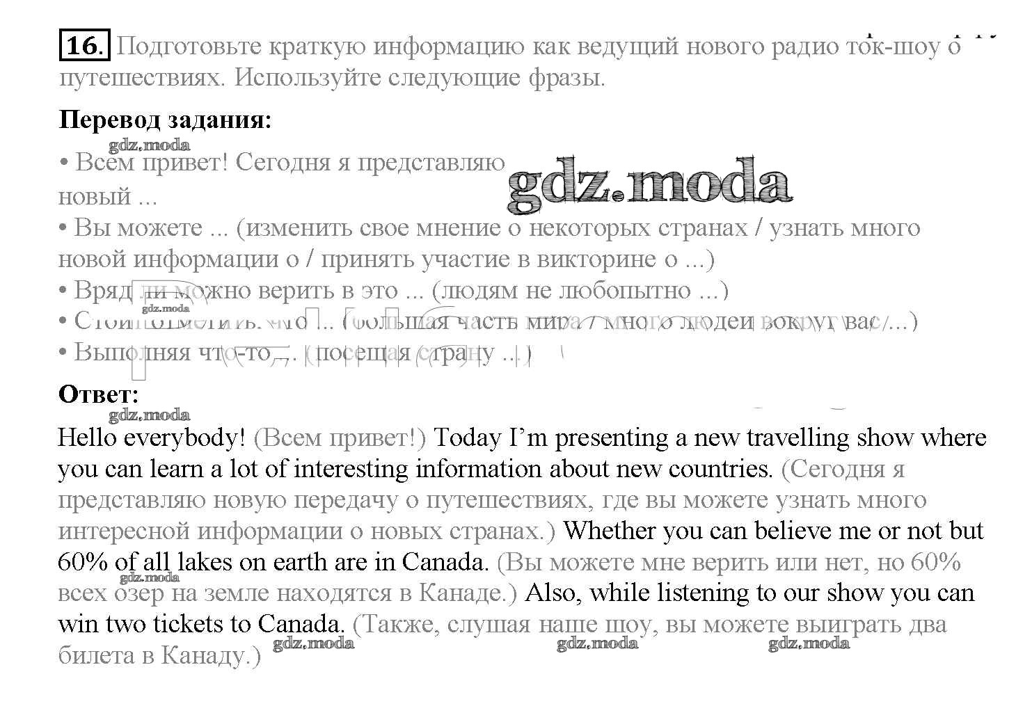 ОТВЕТ на задание № 16 Учебник по Английскому языку 8 класс Биболетова Enjoy English