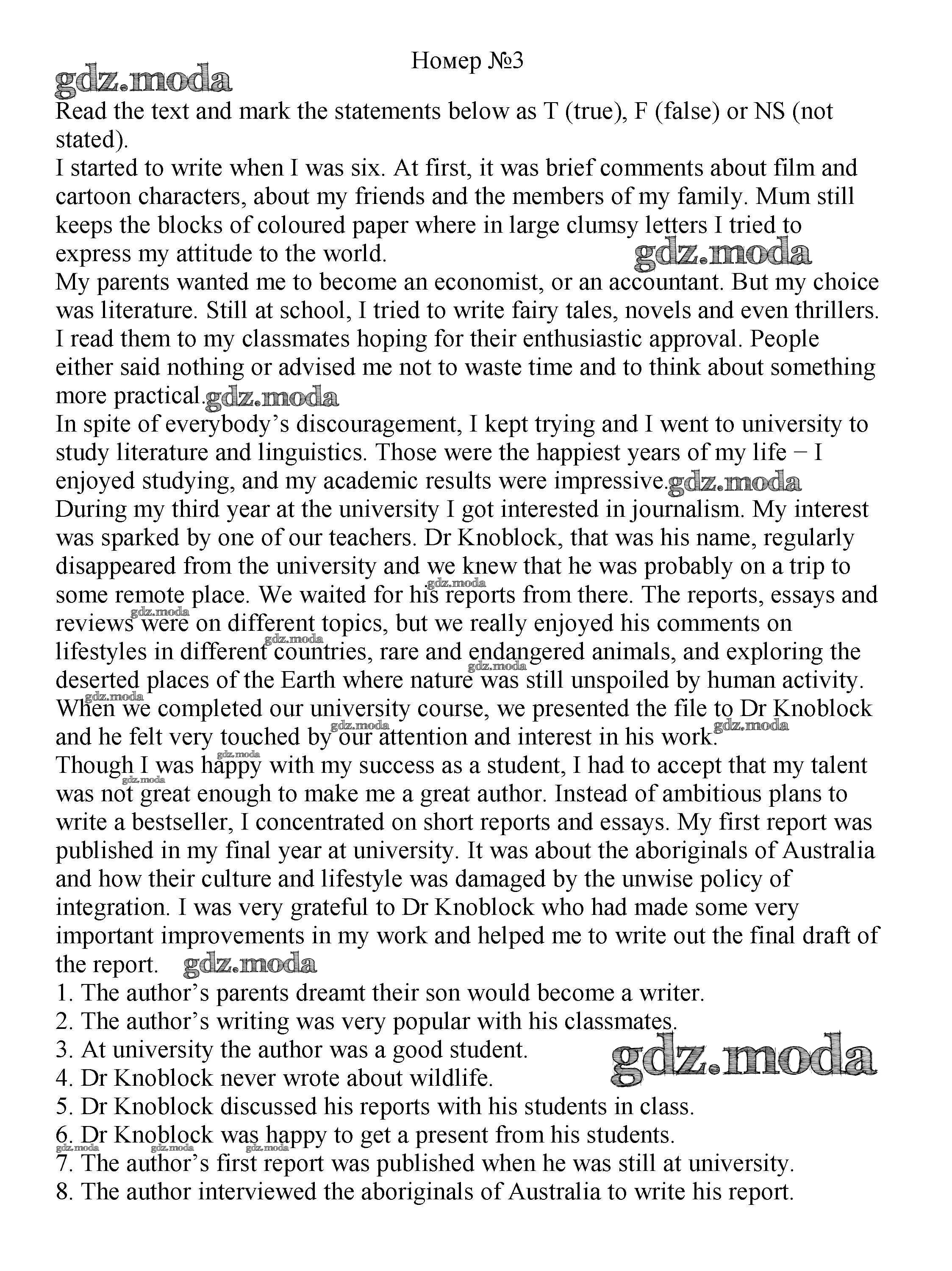 ОТВЕТ на задание № 3 Учебник по Английскому языку 8 класс Биболетова Enjoy English