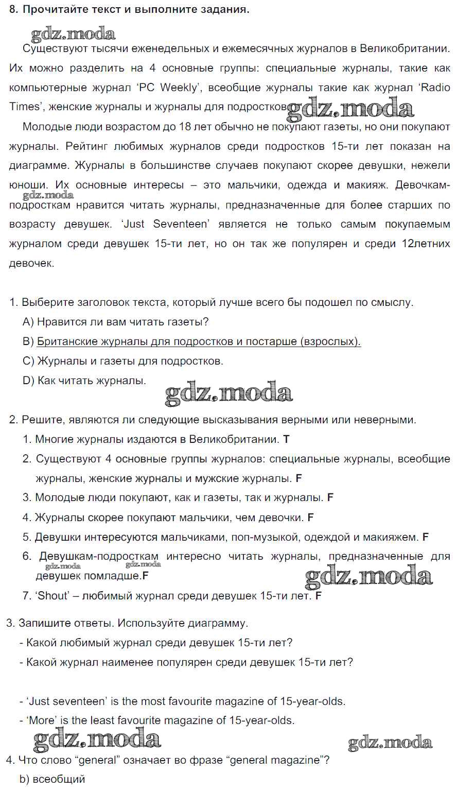 ОТВЕТ на задание № 8 Учебник по Английскому языку 8 класс Биболетова Enjoy English