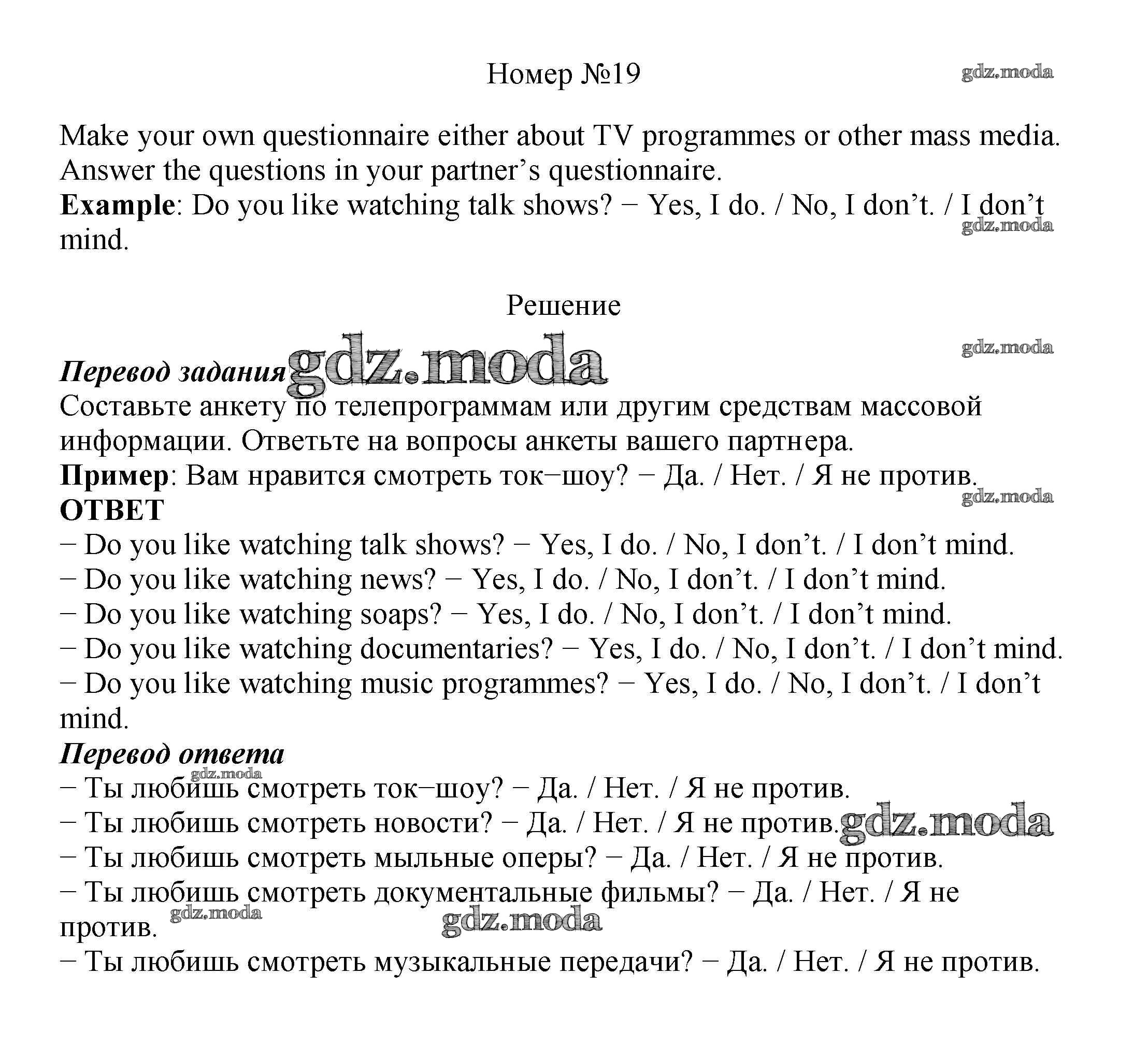 ОТВЕТ на задание № 19 Учебник по Английскому языку 8 класс Биболетова Enjoy English