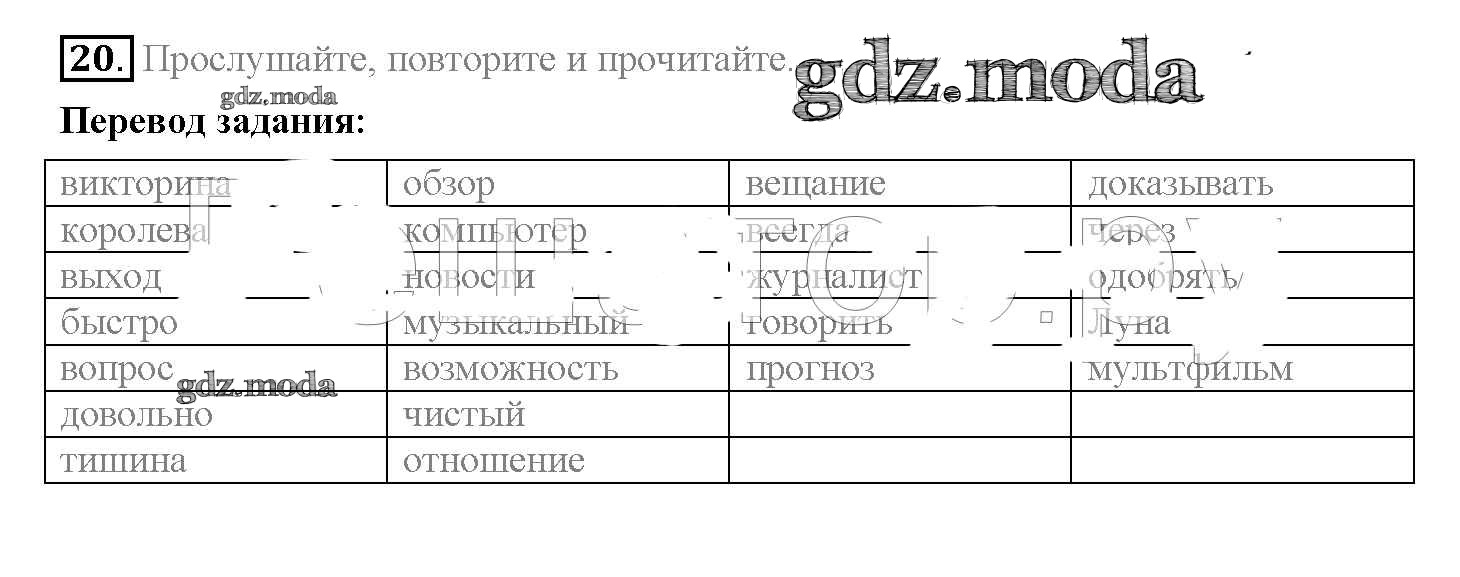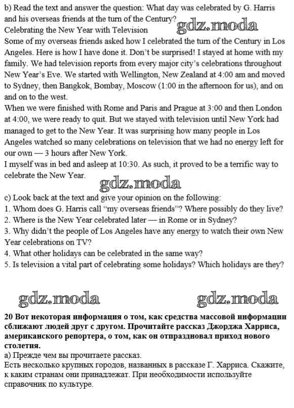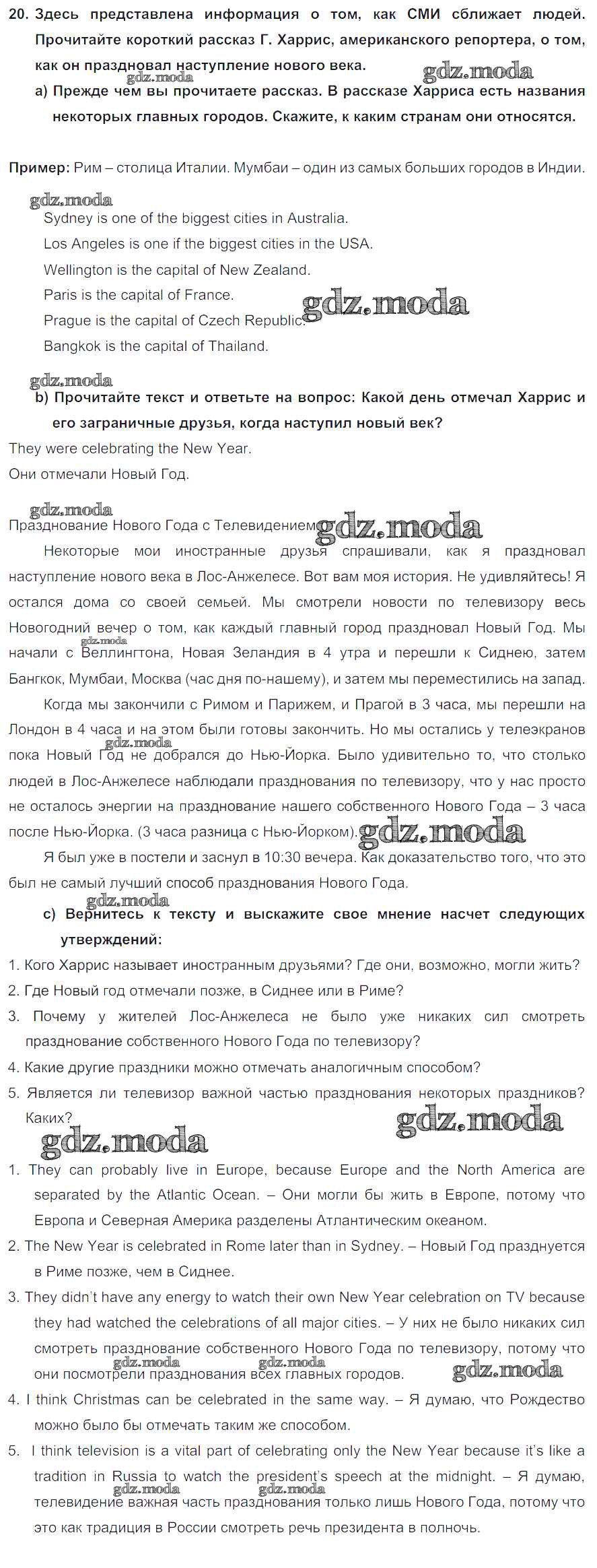 ОТВЕТ на задание № 20 Учебник по Английскому языку 8 класс Биболетова Enjoy English