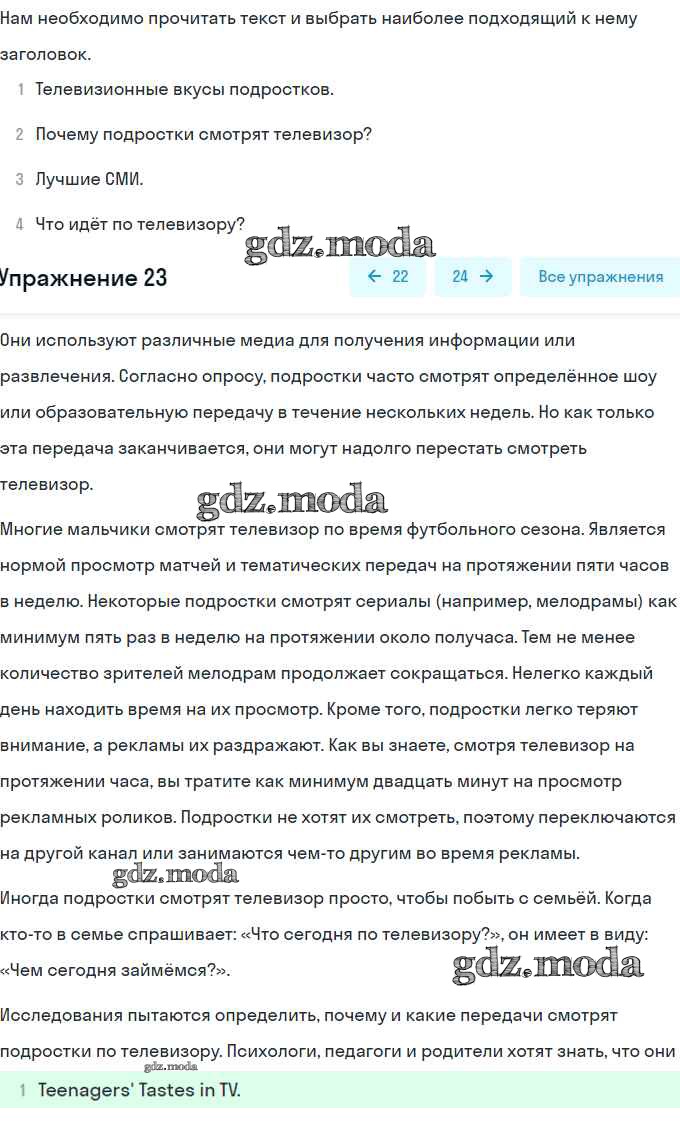 ОТВЕТ на задание № 23 Учебник по Английскому языку 8 класс Биболетова Enjoy English
