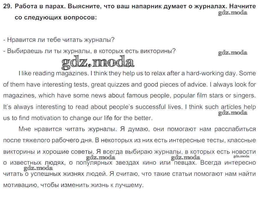 ОТВЕТ на задание № 29 Учебник по Английскому языку 8 класс Биболетова Enjoy English