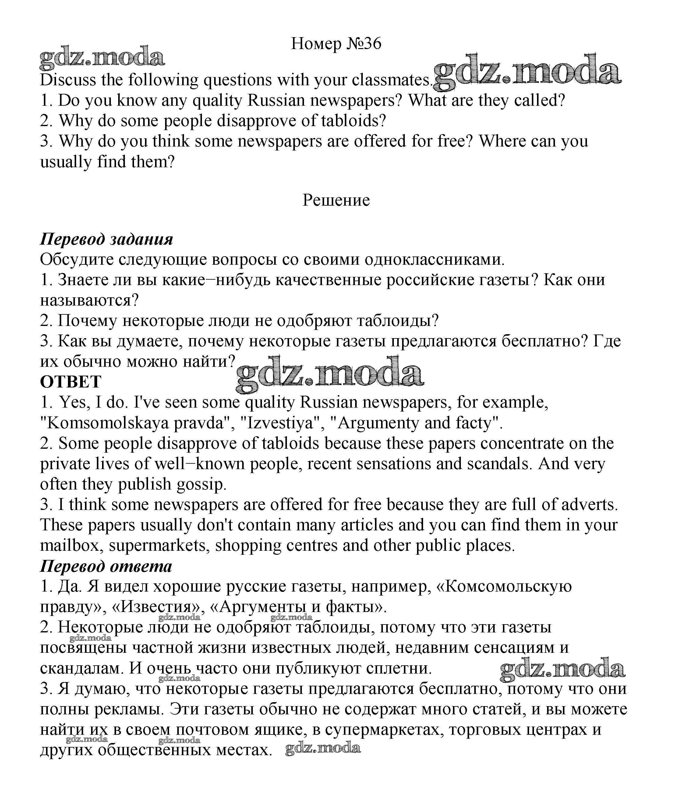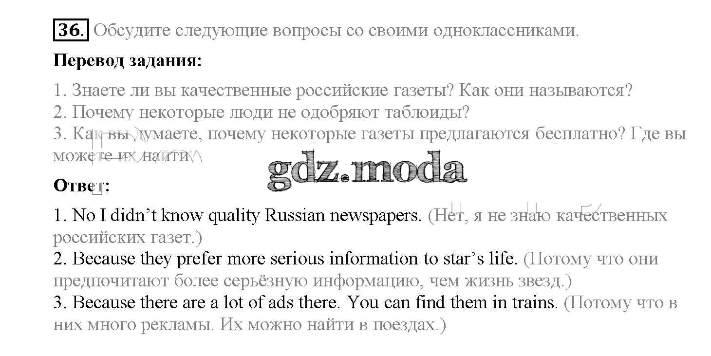 ОТВЕТ на задание № 36 Учебник по Английскому языку 8 класс Биболетова Enjoy English