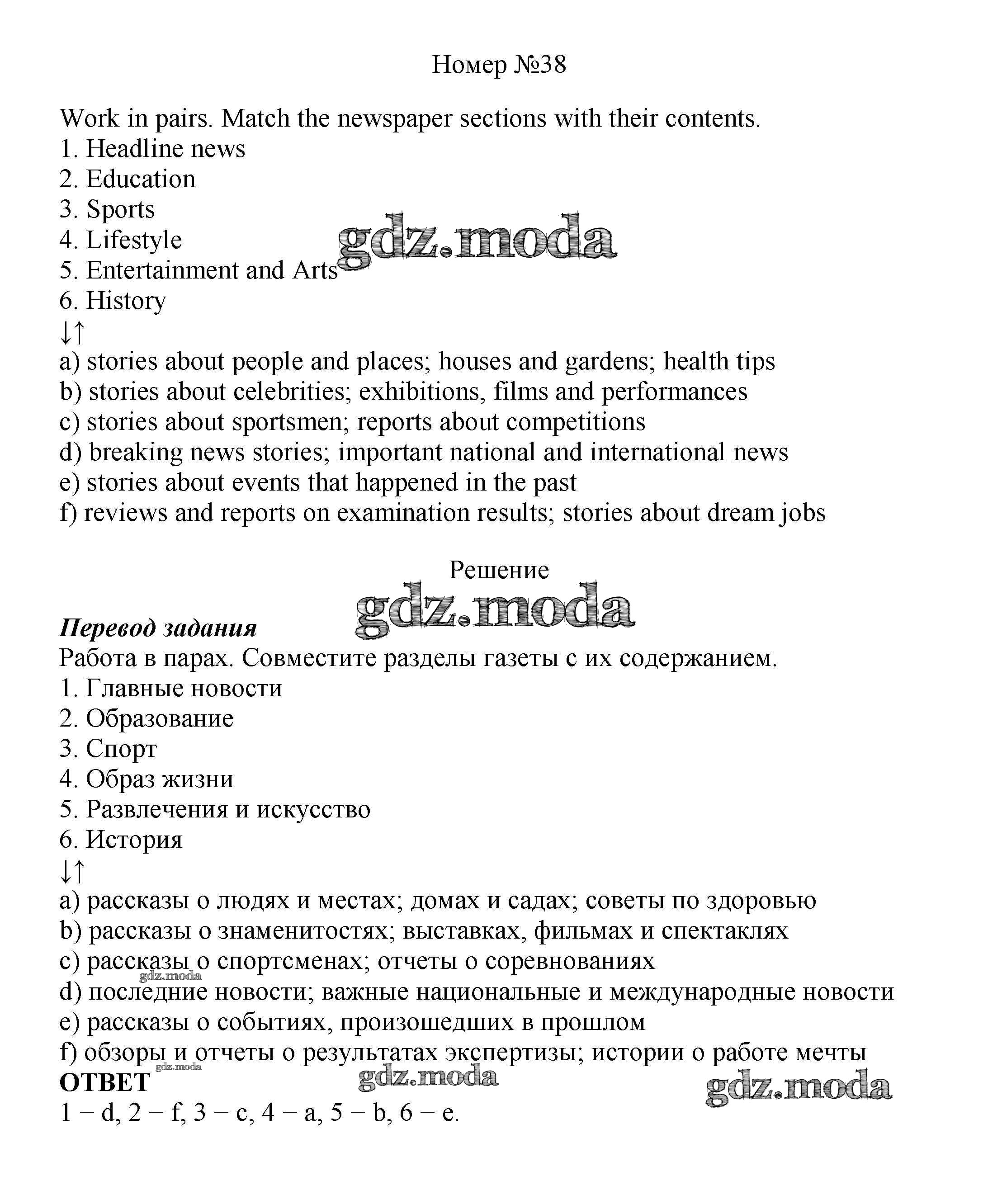 ОТВЕТ на задание № 38 Учебник по Английскому языку 8 класс Биболетова Enjoy English