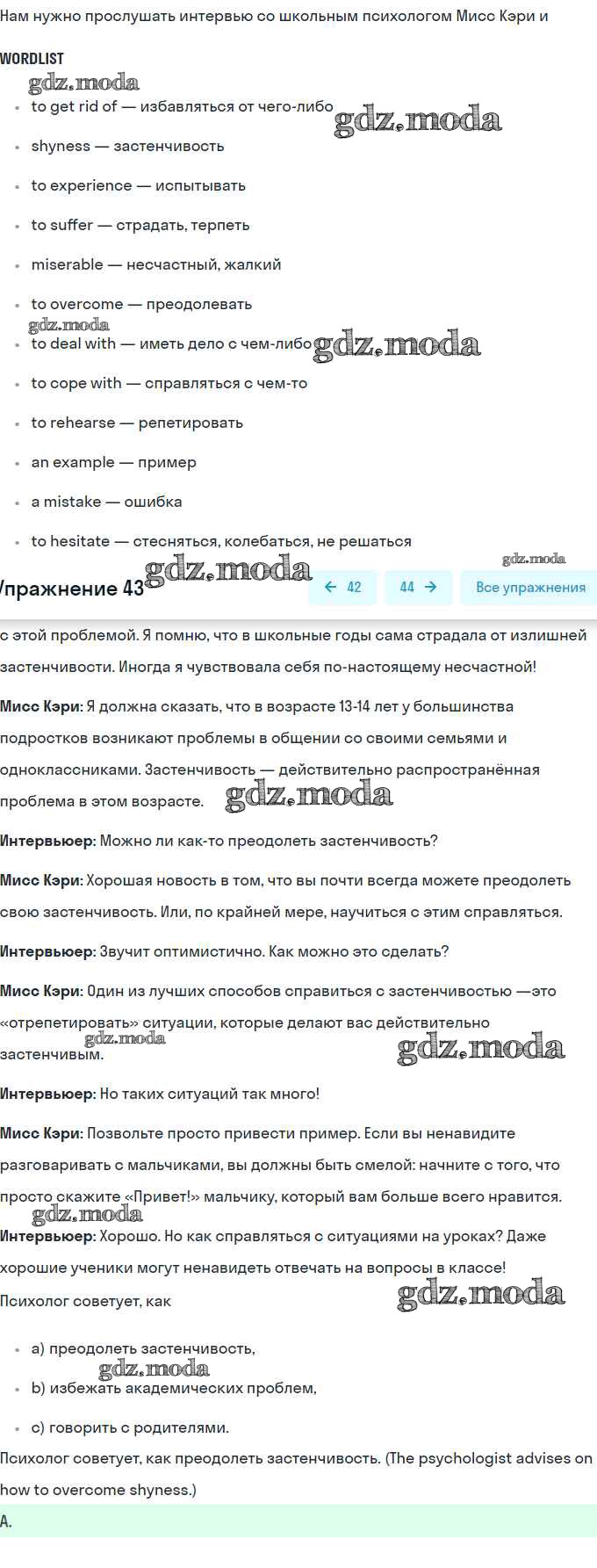 ОТВЕТ на задание № 43 Учебник по Английскому языку 8 класс Биболетова Enjoy English