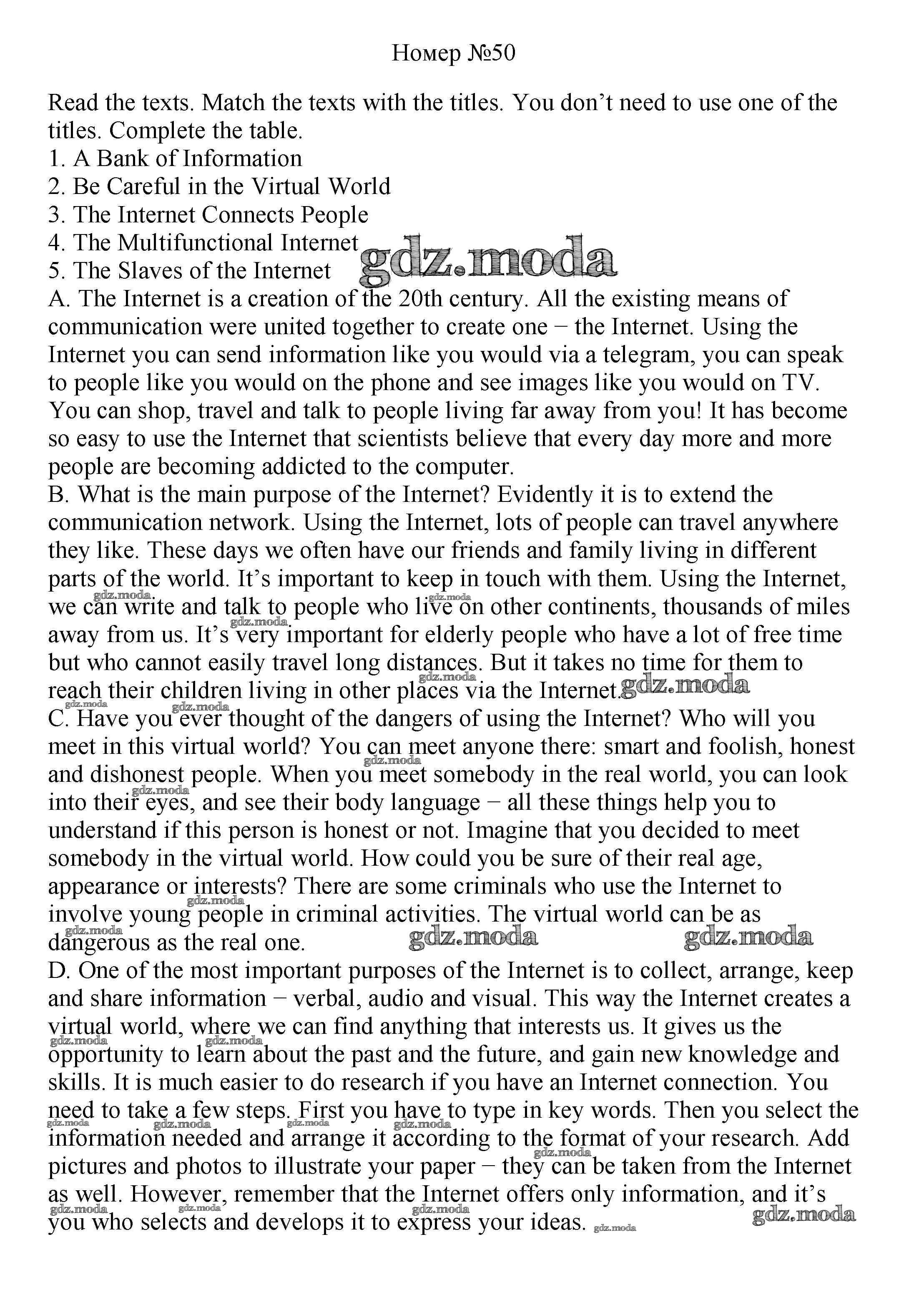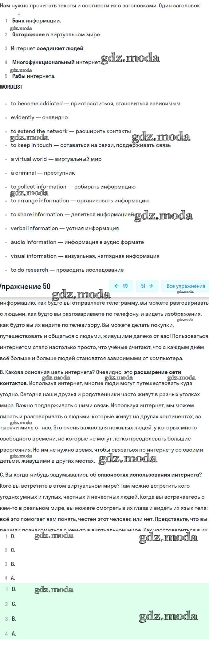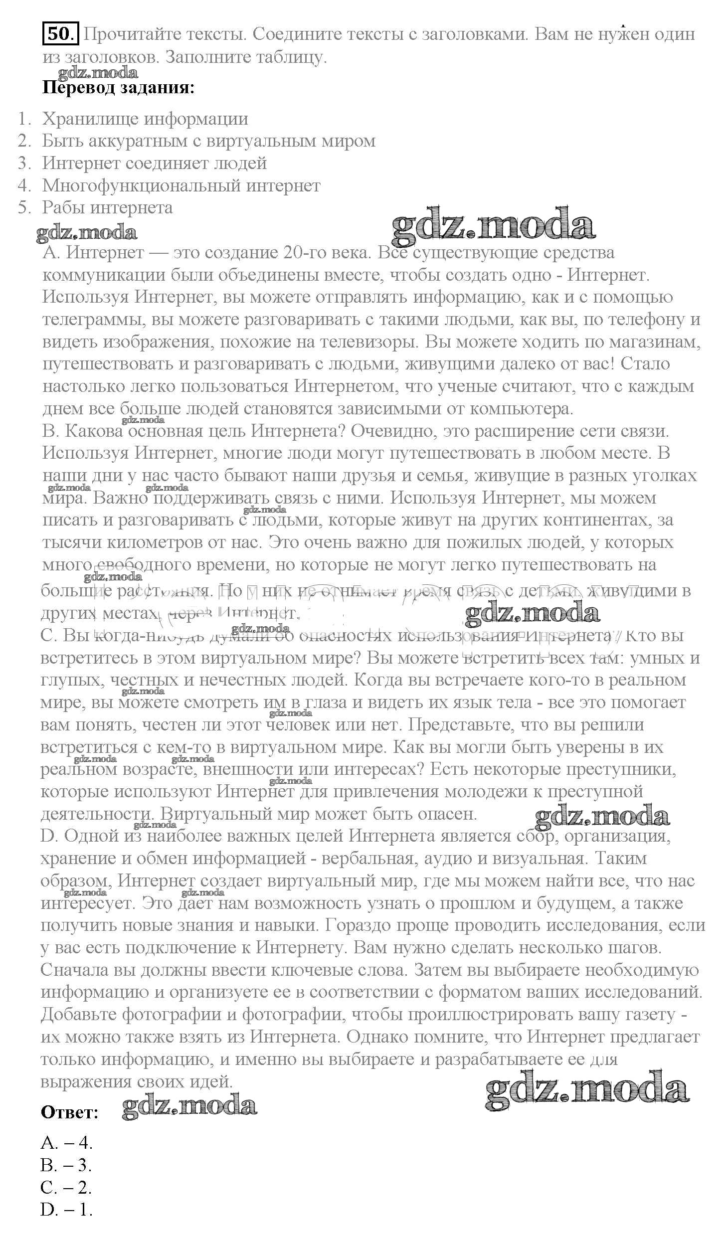 ОТВЕТ на задание № 50 Учебник по Английскому языку 8 класс Биболетова Enjoy English