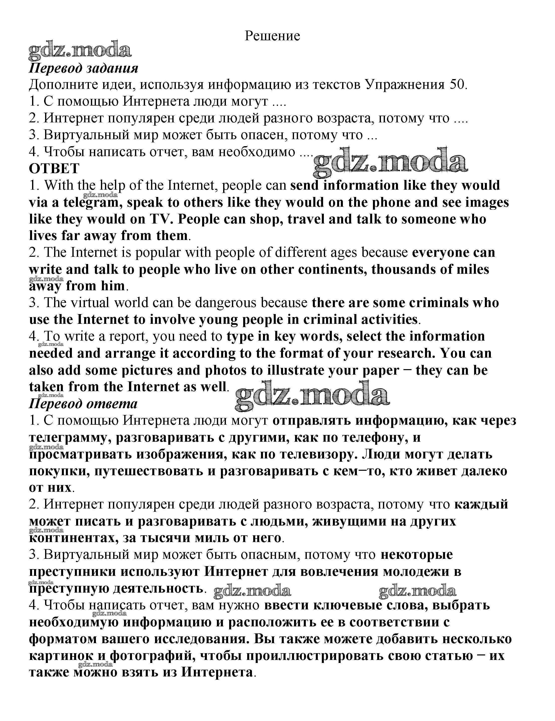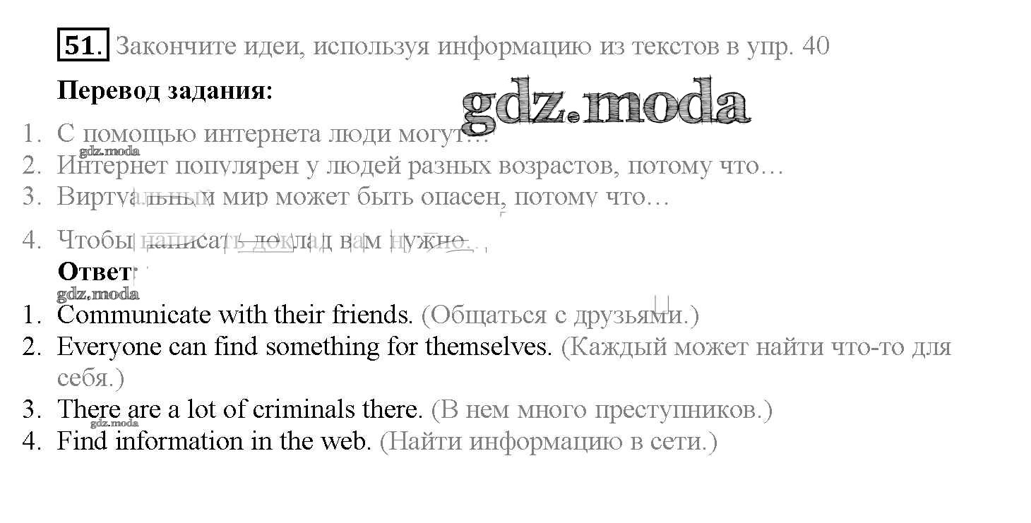 ОТВЕТ на задание № 51 Учебник по Английскому языку 8 класс Биболетова Enjoy English