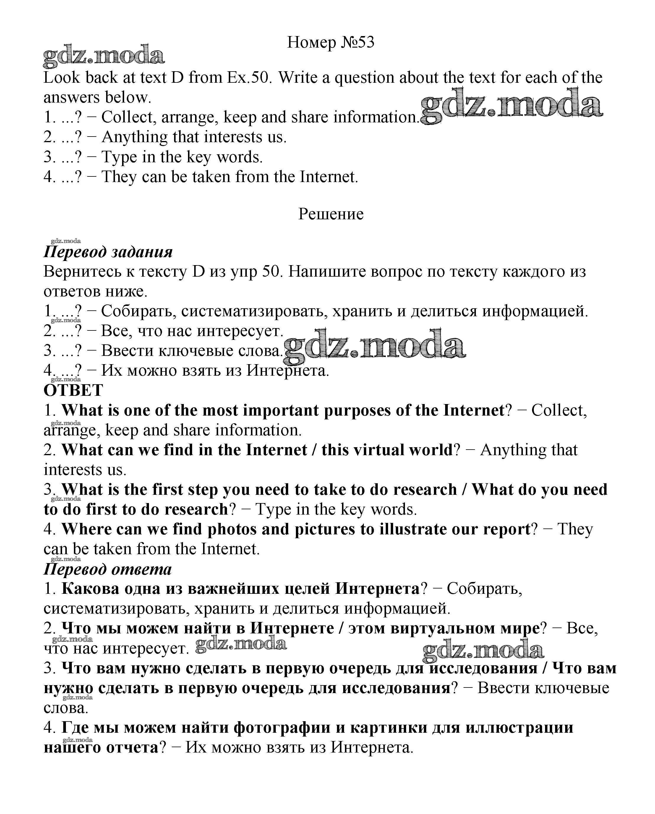 ОТВЕТ на задание № 53 Учебник по Английскому языку 8 класс Биболетова Enjoy English