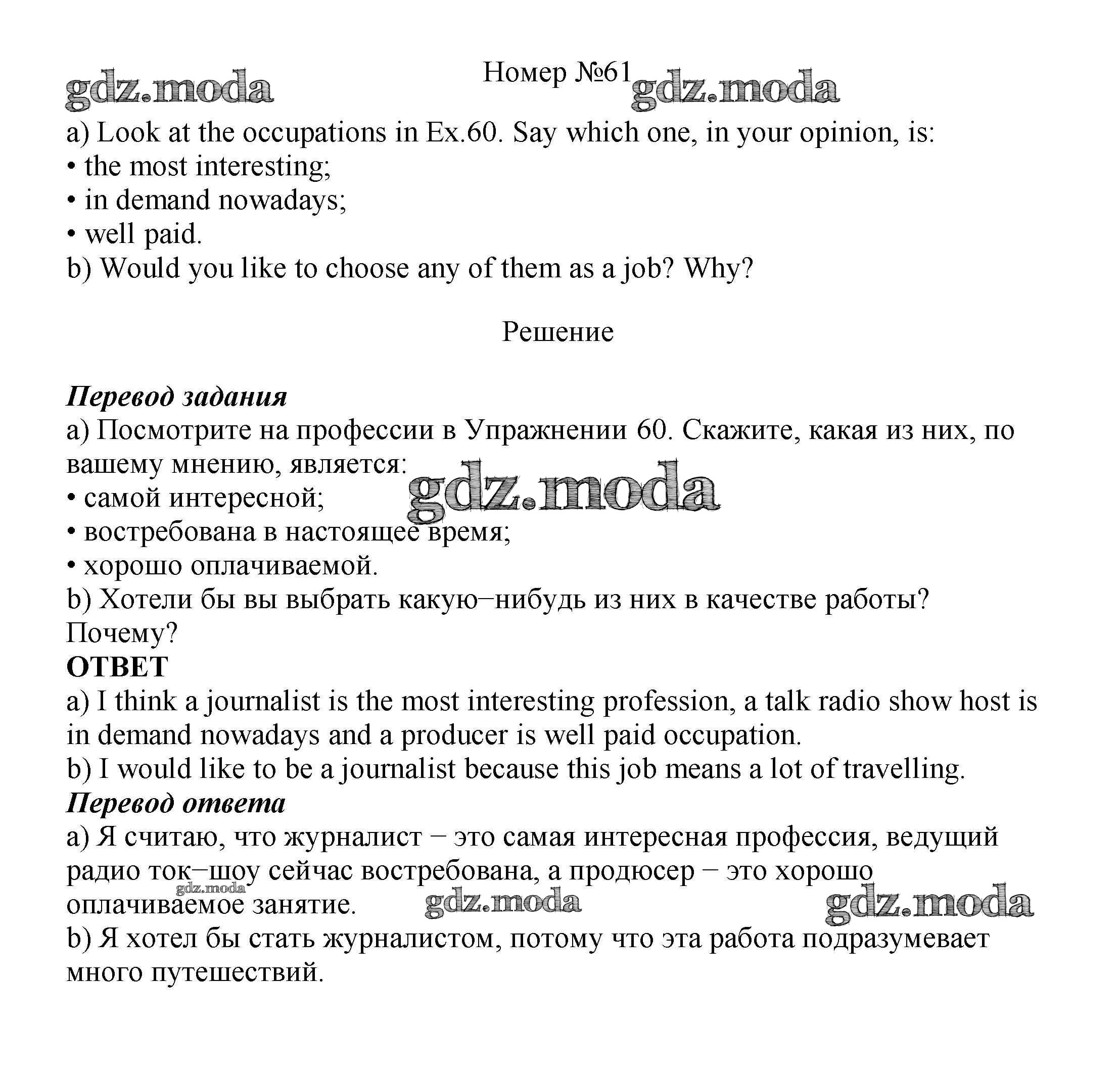 ОТВЕТ на задание № 61 Учебник по Английскому языку 8 класс Биболетова Enjoy English