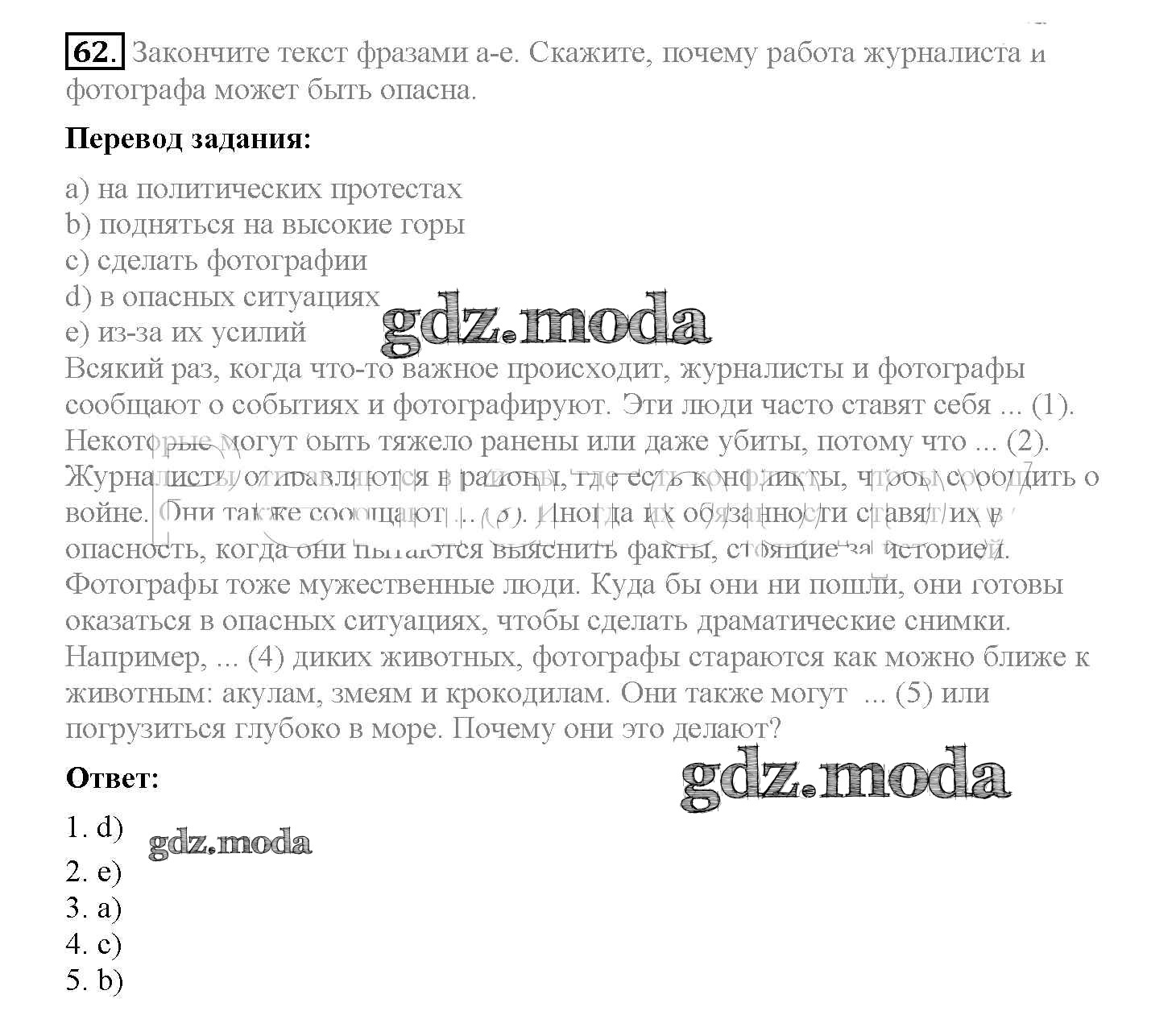 ОТВЕТ на задание № 62 Учебник по Английскому языку 8 класс Биболетова Enjoy English