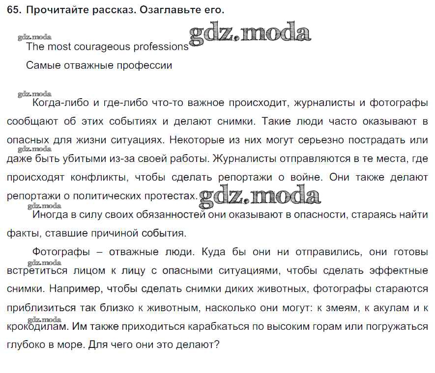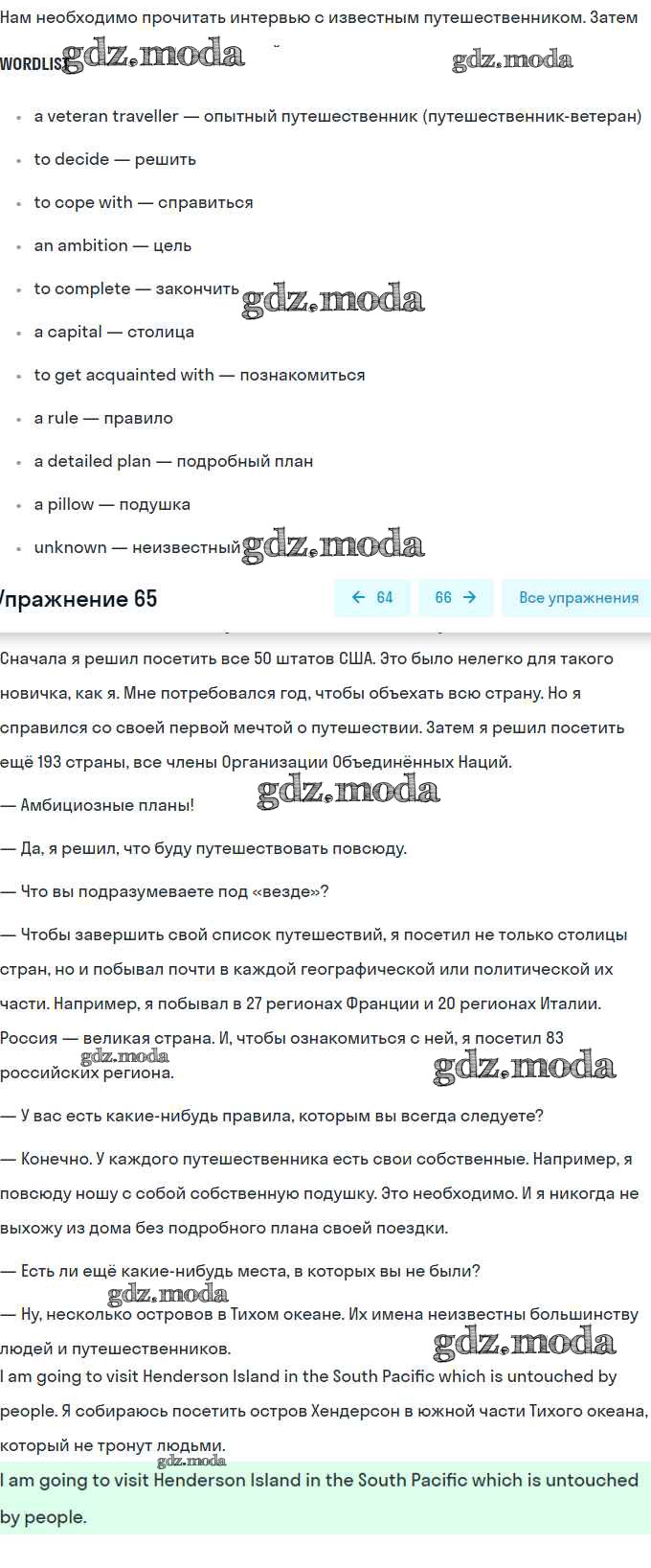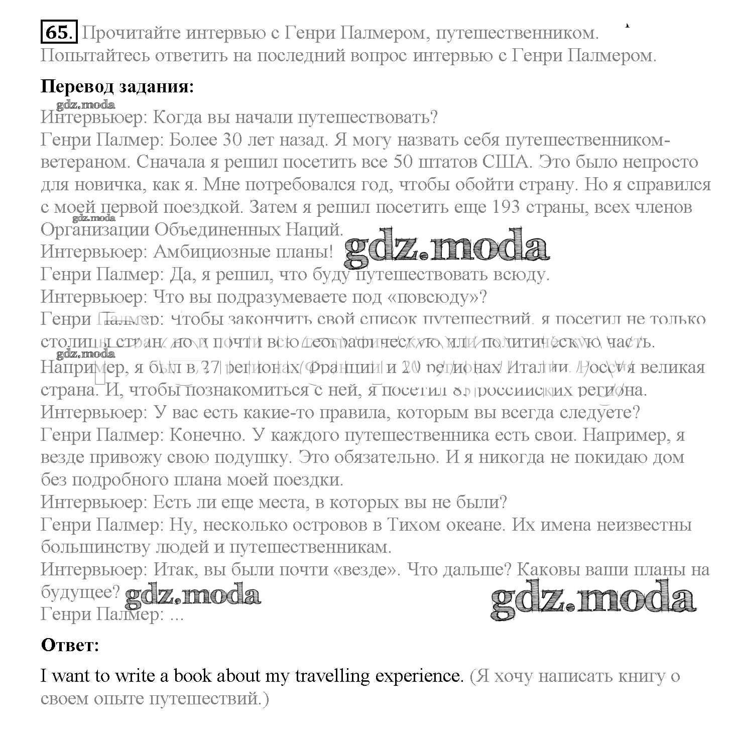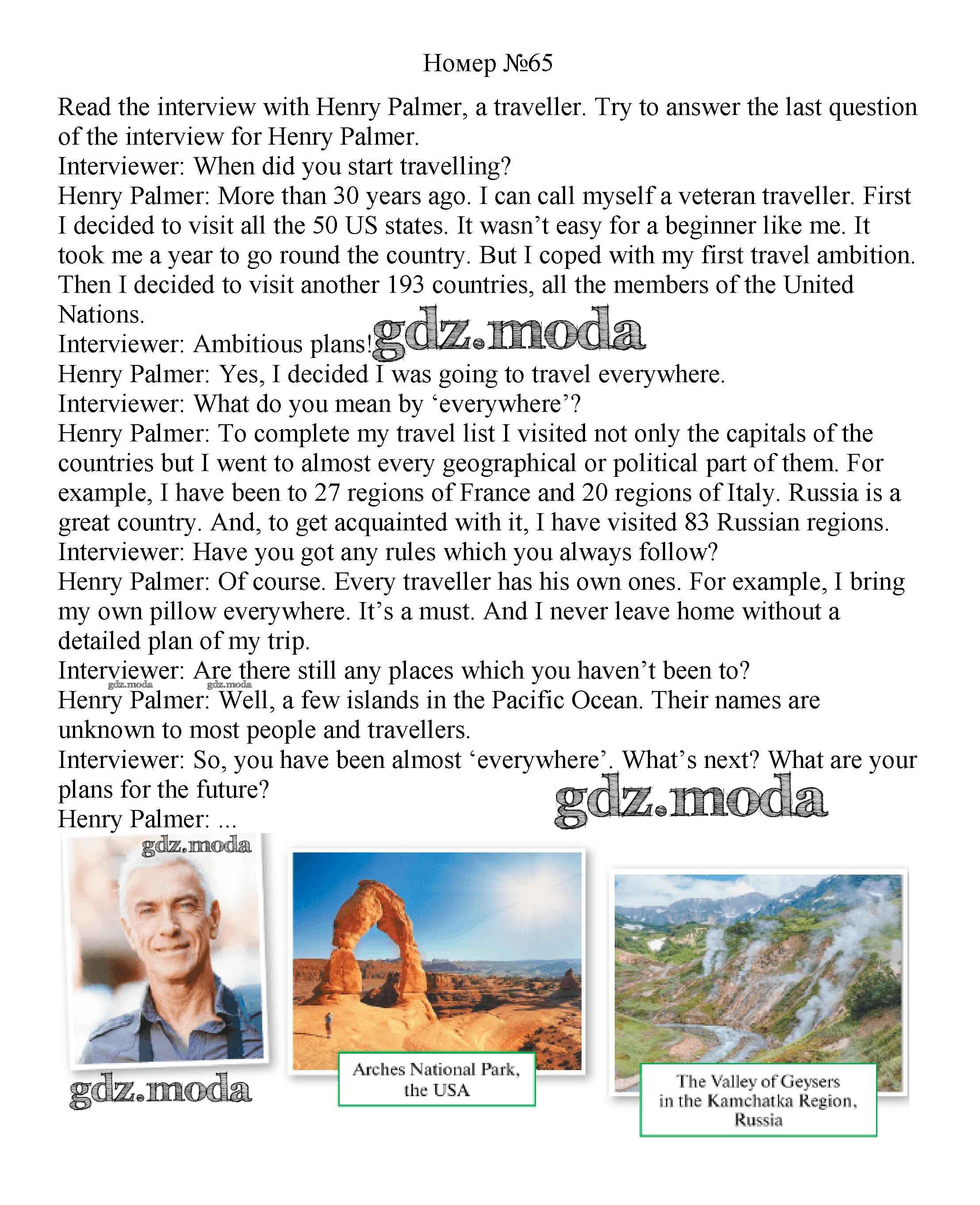 ОТВЕТ на задание № 65 Учебник по Английскому языку 8 класс Биболетова Enjoy English