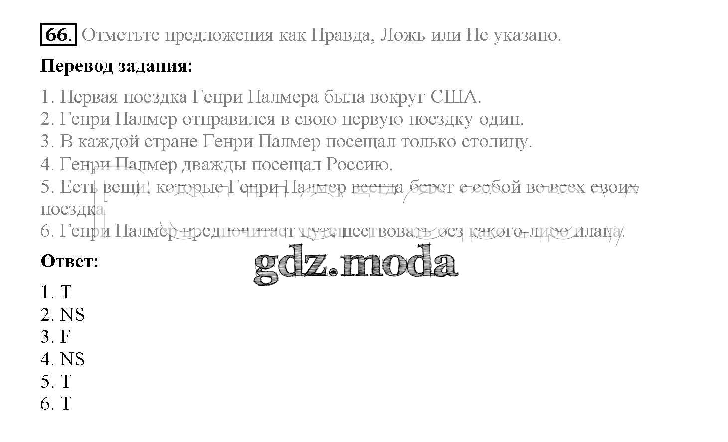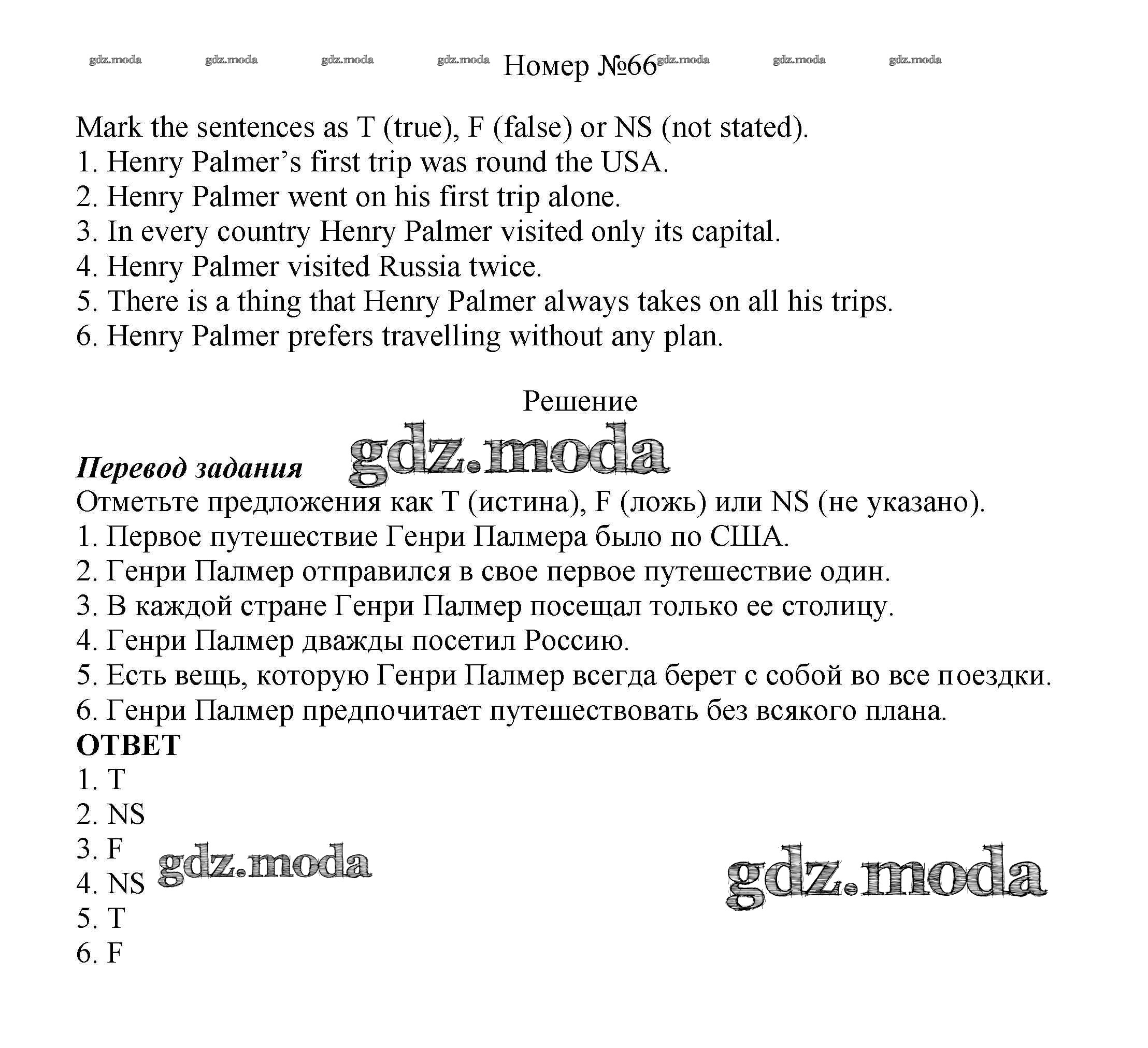 ОТВЕТ на задание № 66 Учебник по Английскому языку 8 класс Биболетова Enjoy English
