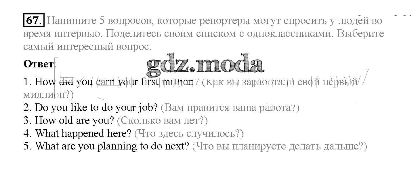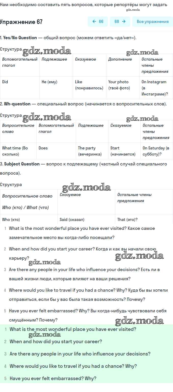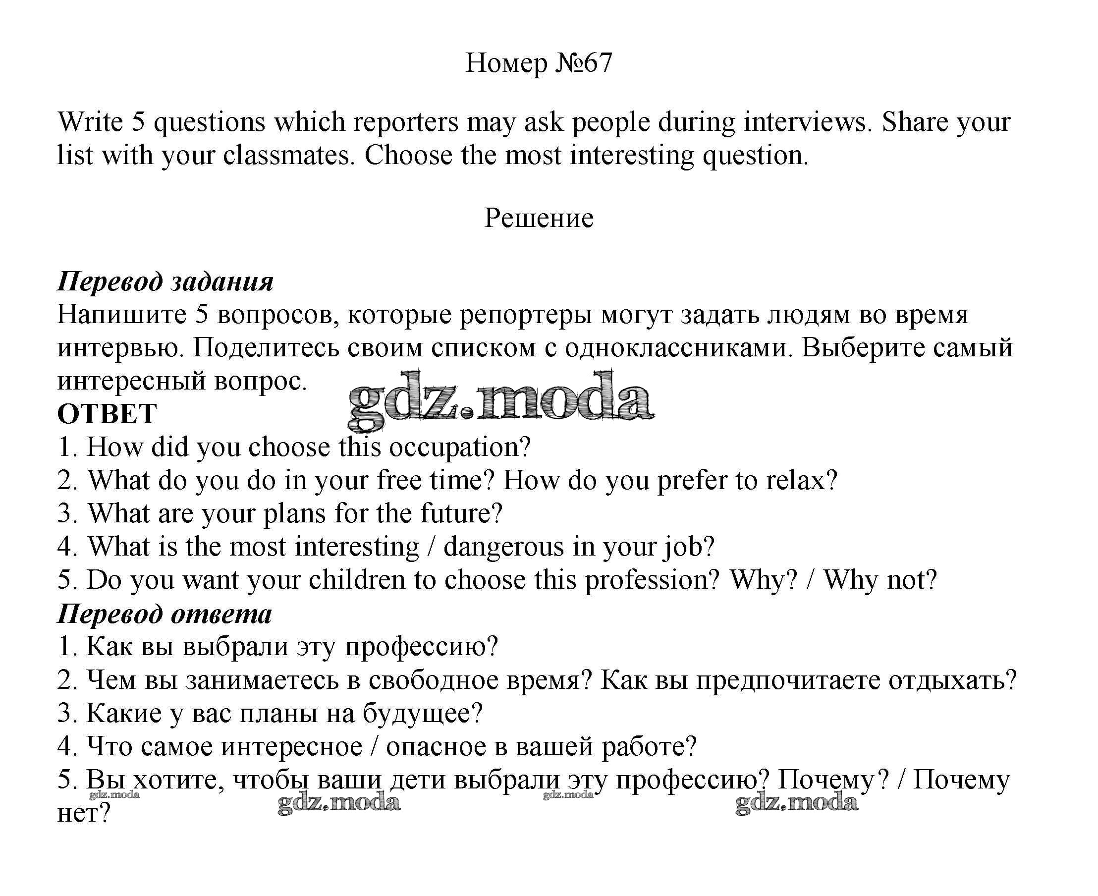 ОТВЕТ на задание № 67 Учебник по Английскому языку 8 класс Биболетова Enjoy English