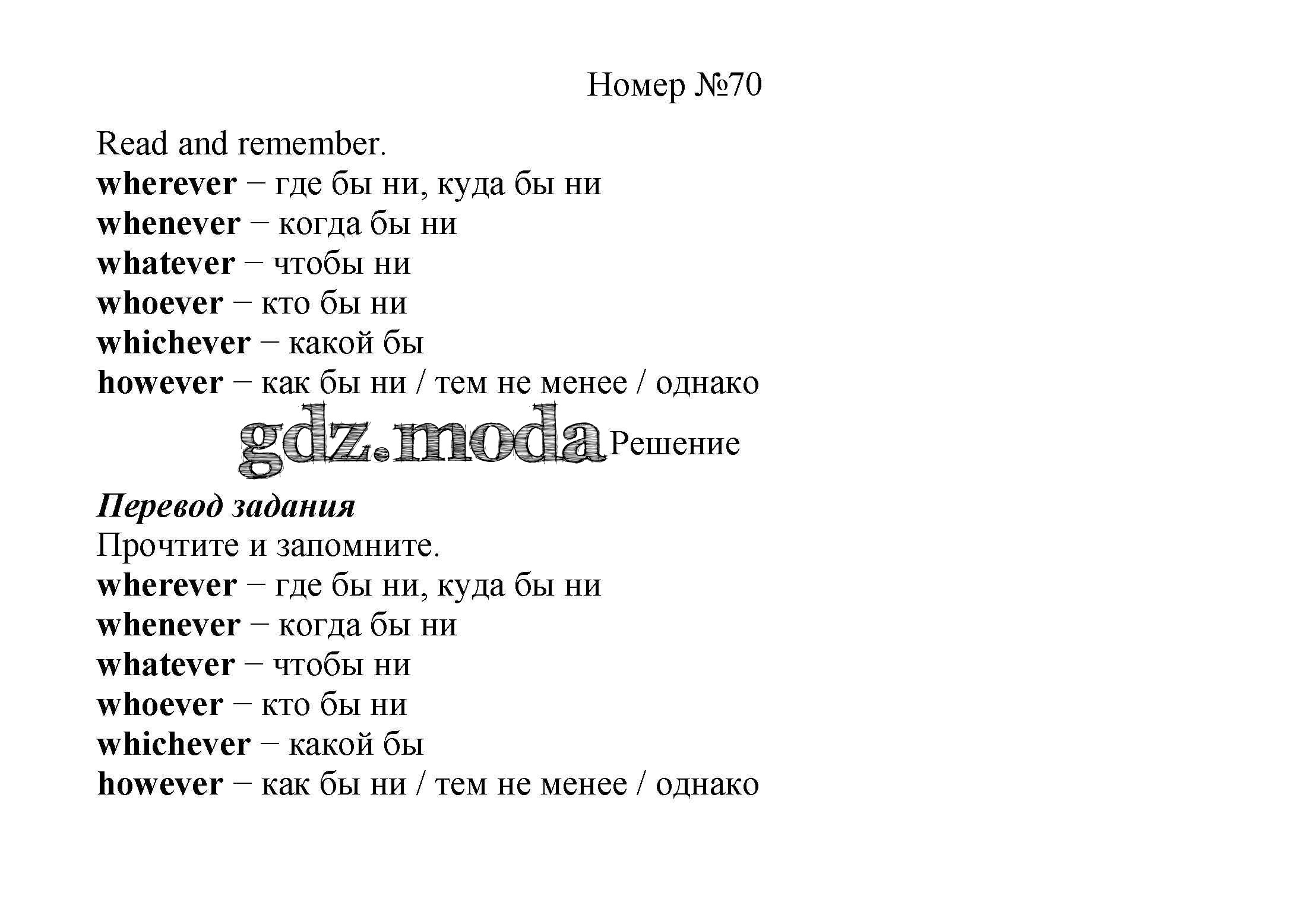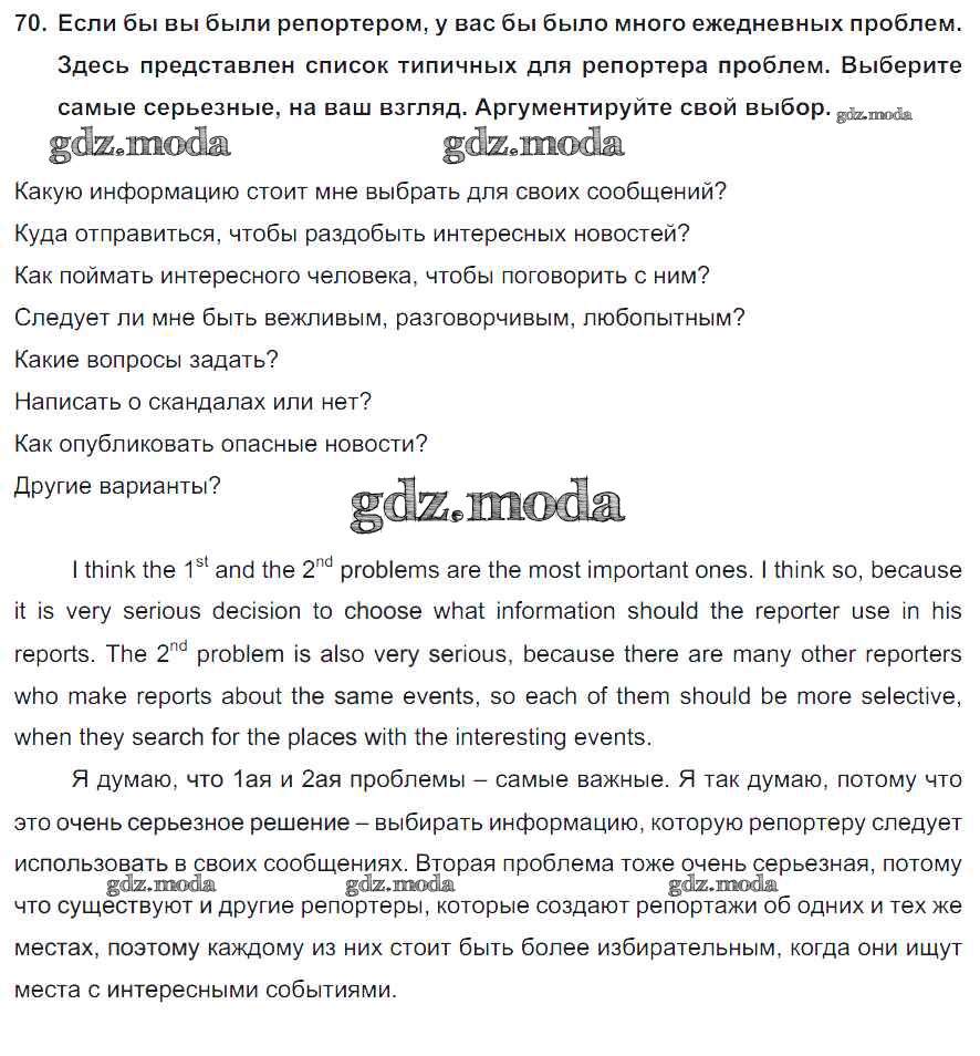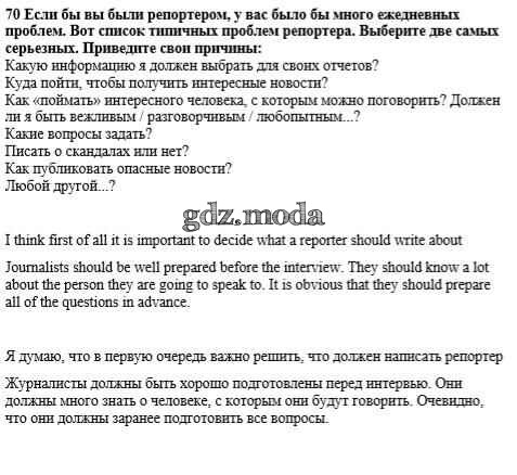 ОТВЕТ на задание № 70 Учебник по Английскому языку 8 класс Биболетова Enjoy English