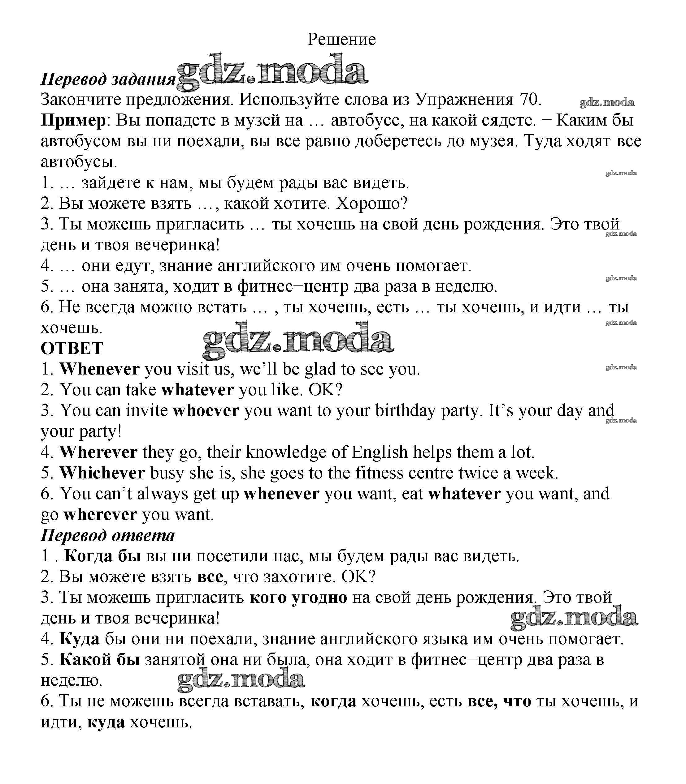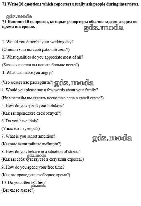 ОТВЕТ на задание № 71 Учебник по Английскому языку 8 класс Биболетова Enjoy English