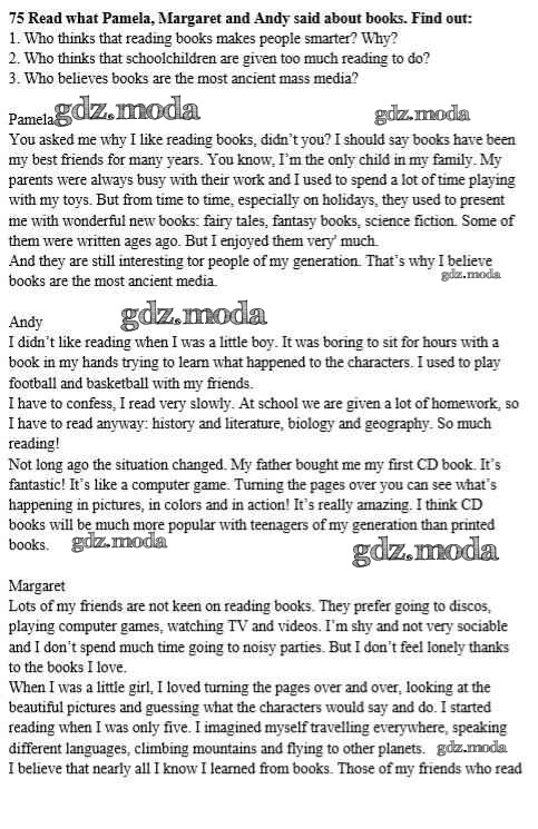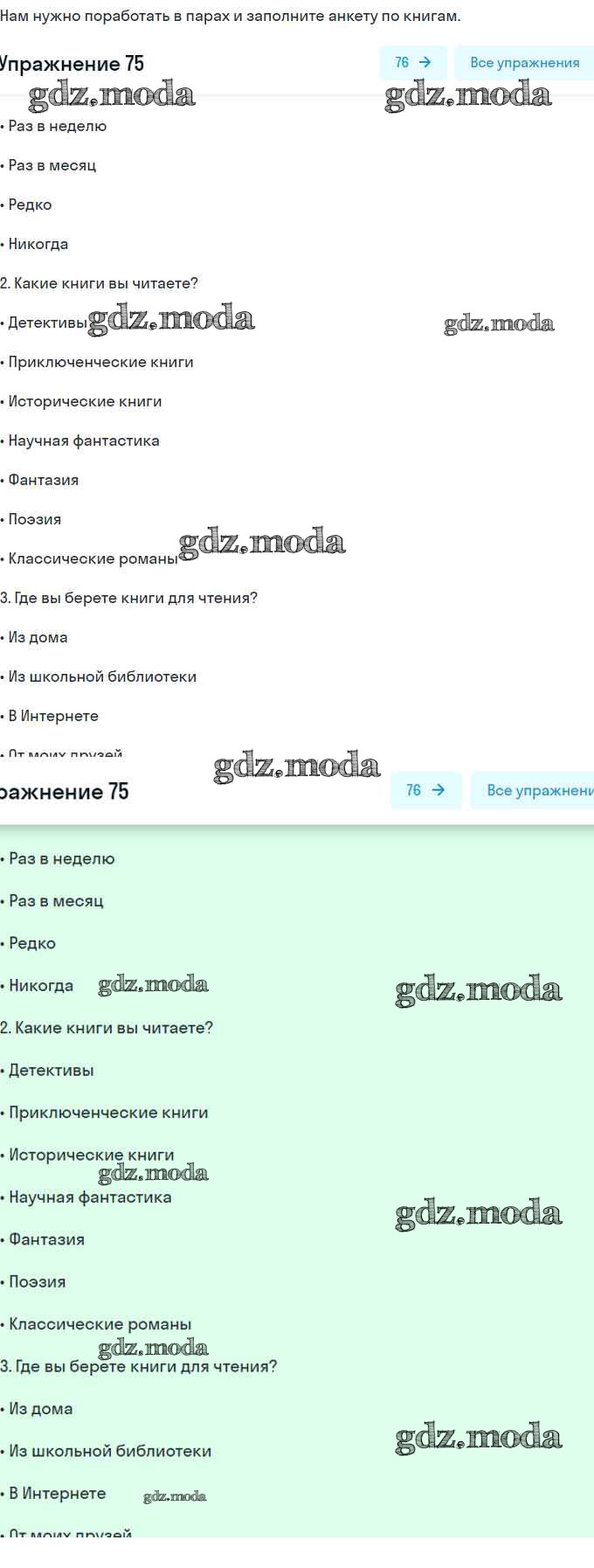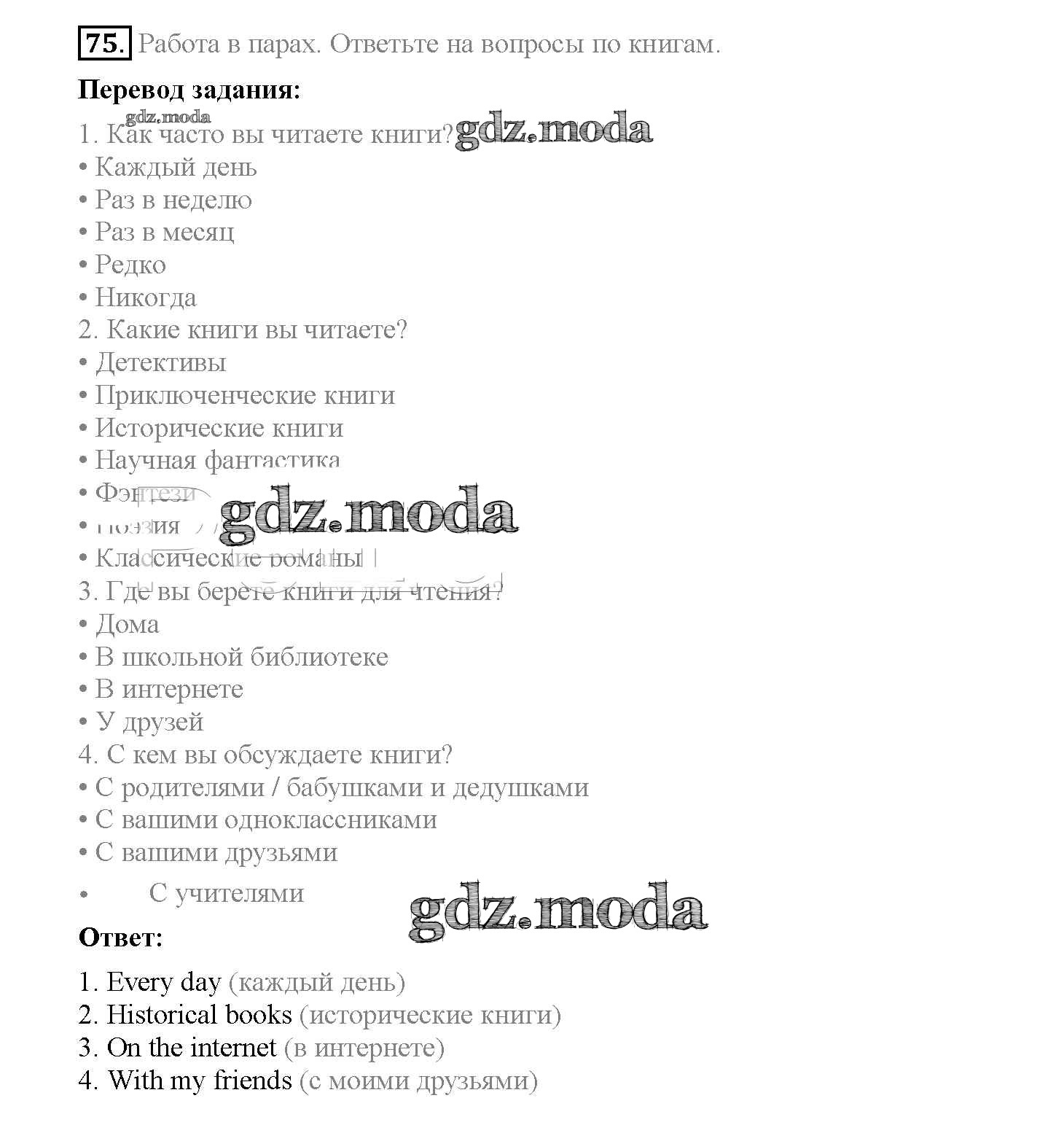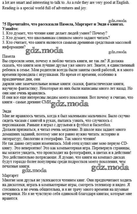 ОТВЕТ на задание № 75 Учебник по Английскому языку 8 класс Биболетова Enjoy English