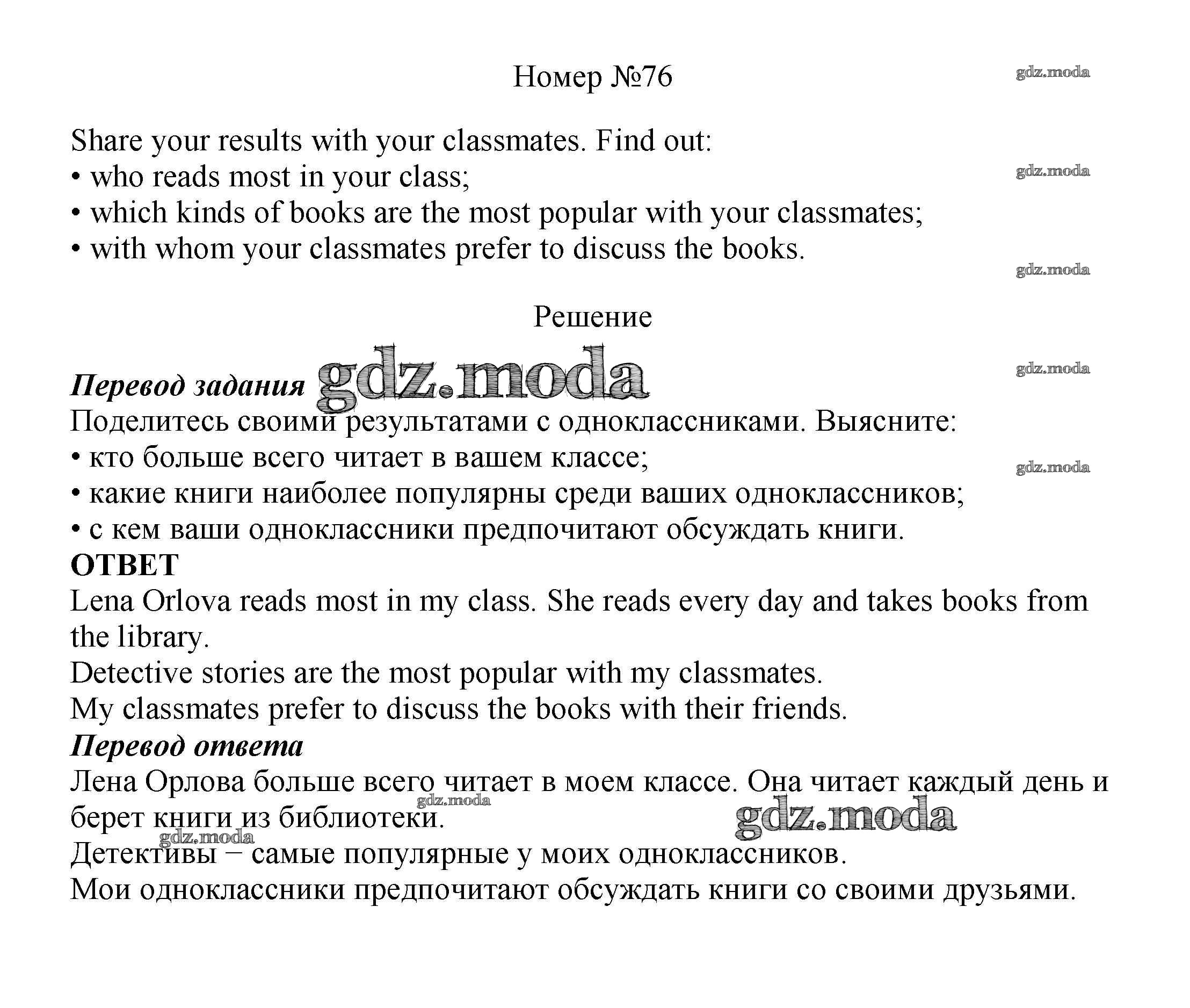 ОТВЕТ на задание № 76 Учебник по Английскому языку 8 класс Биболетова Enjoy English