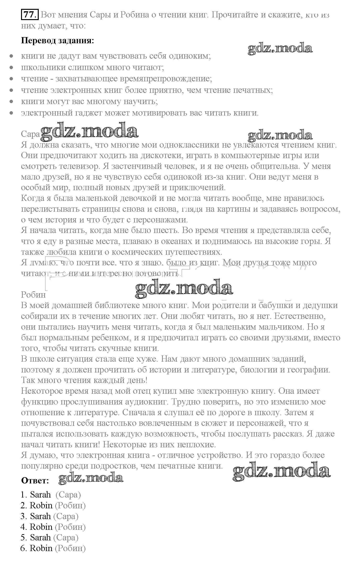 ОТВЕТ на задание № 77 Учебник по Английскому языку 8 класс Биболетова Enjoy English
