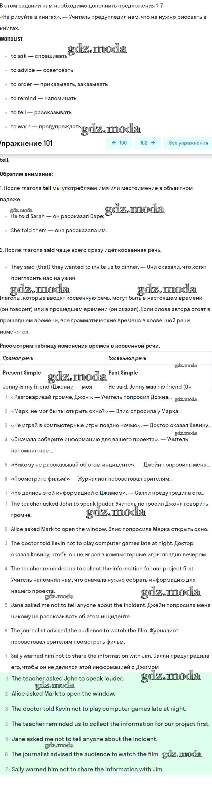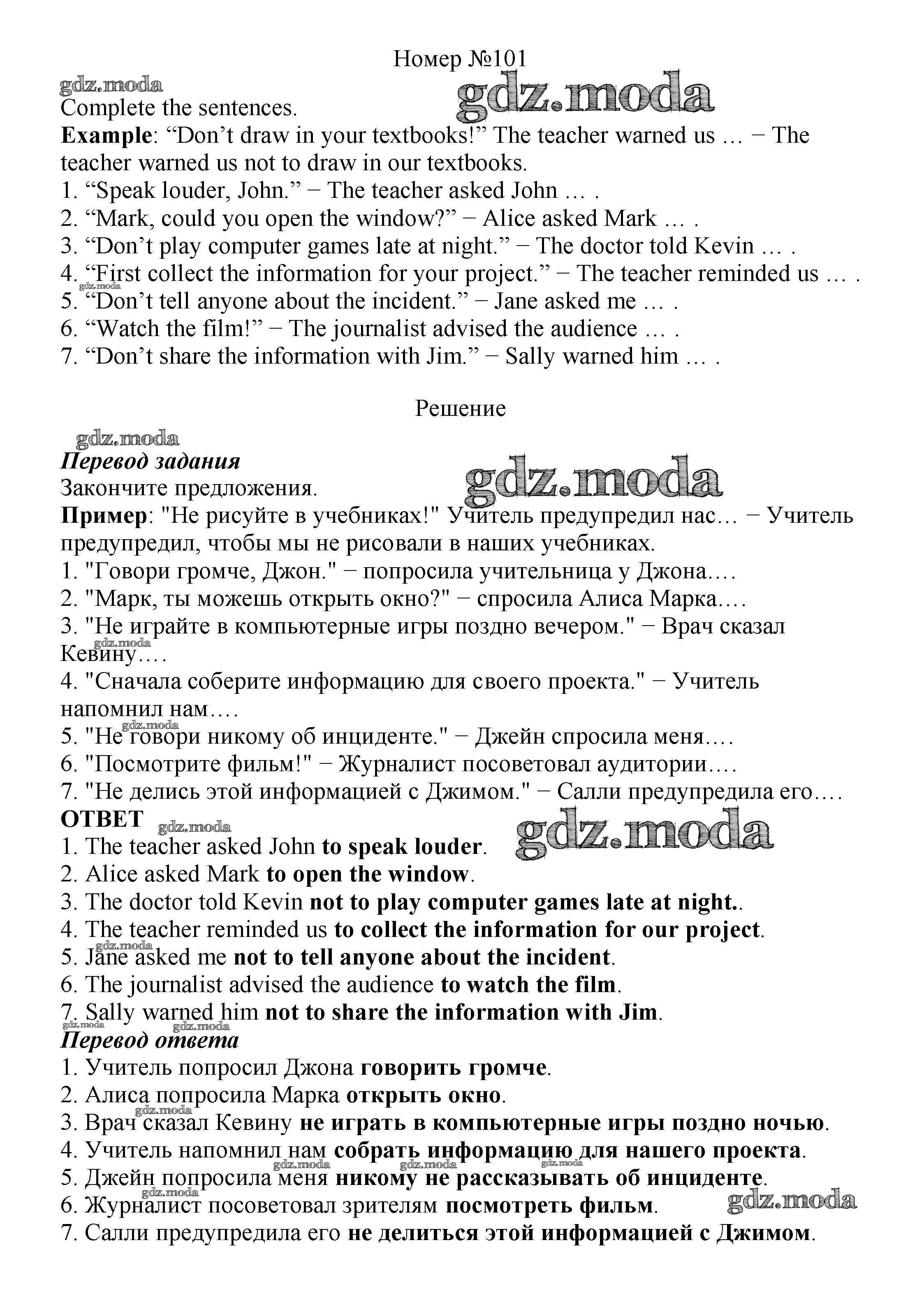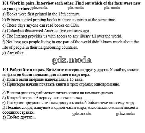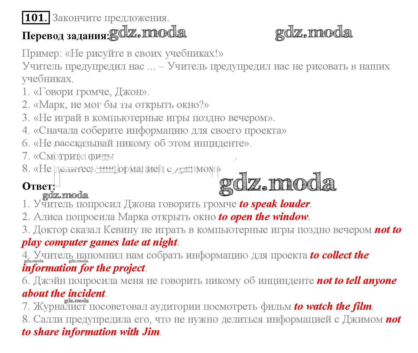 ОТВЕТ на задание № 101 Учебник по Английскому языку 8 класс Биболетова Enjoy English