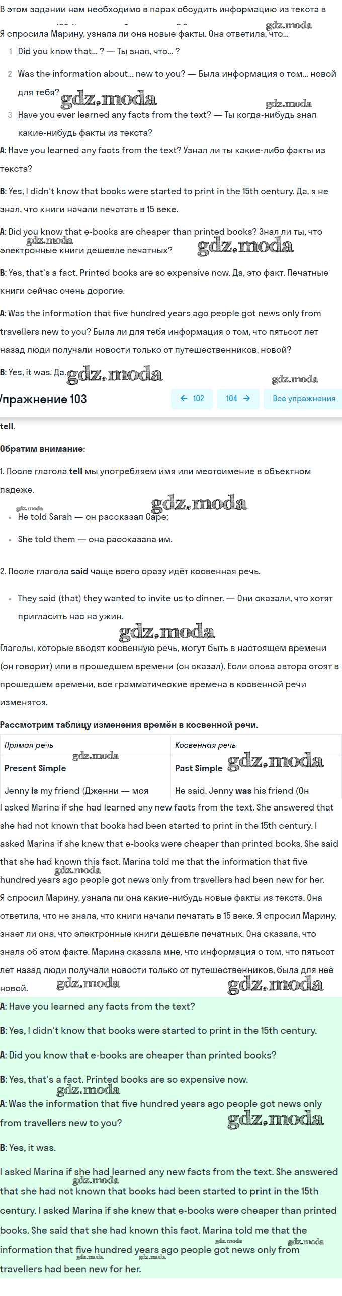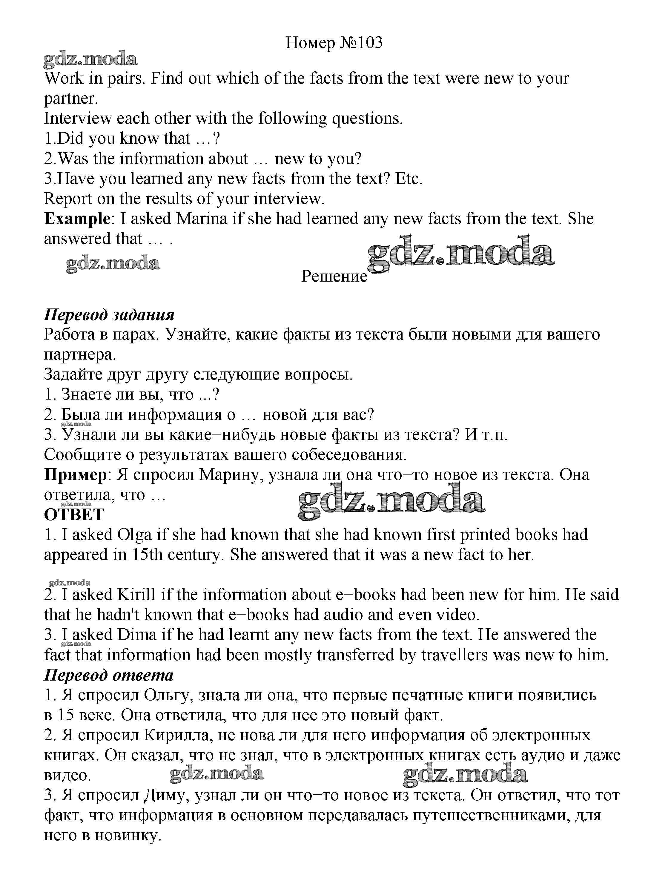 ОТВЕТ на задание № 103 Учебник по Английскому языку 8 класс Биболетова Enjoy English